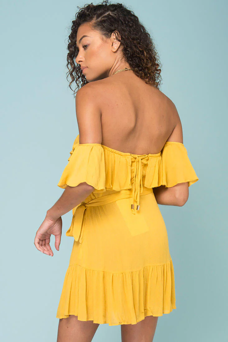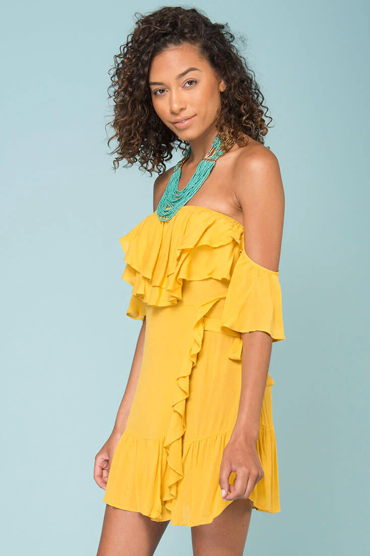 Jaelyn Tube Top Tassel Dress Yellow Mustard