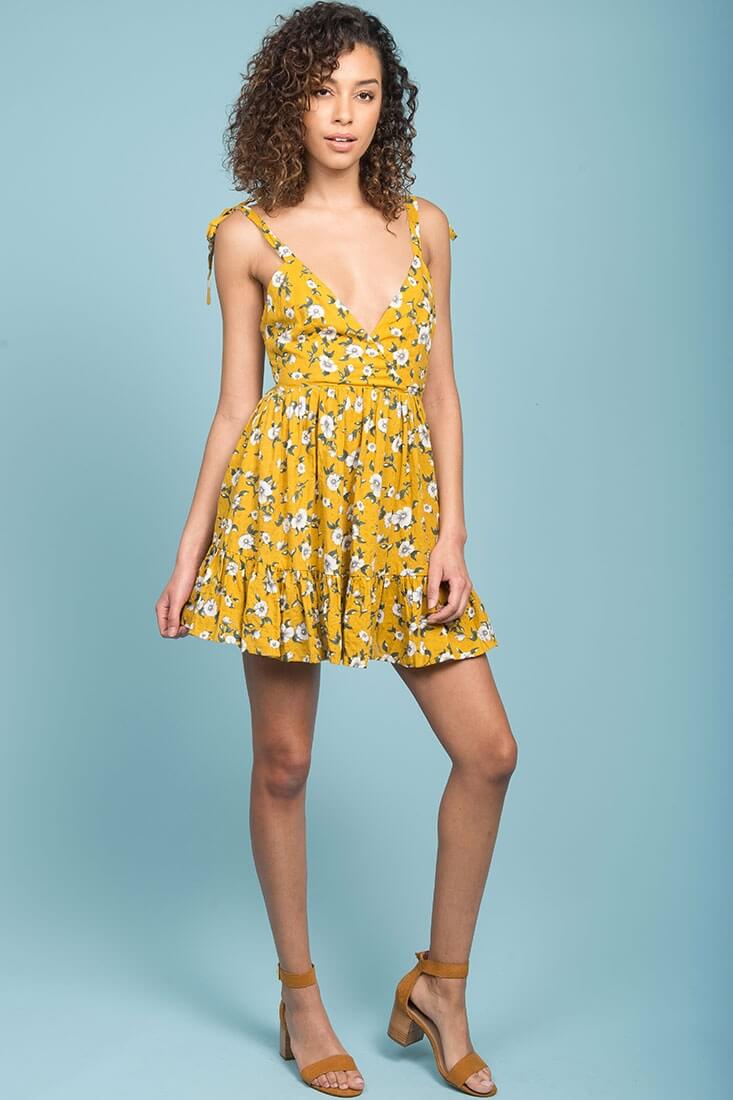 Elin Ruffled Casual Fall Dress Yellow