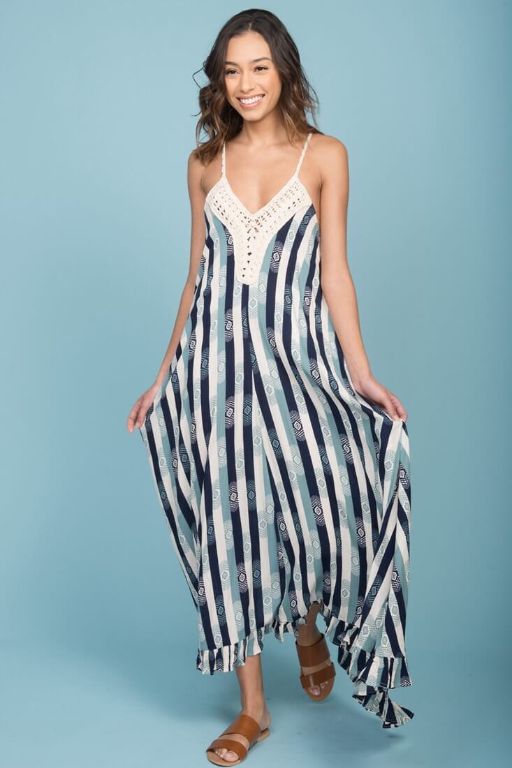 Tristan Striped Crochet Detail Maxi Dress Navy & Beige