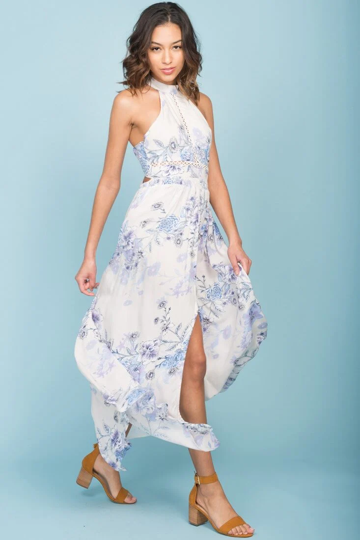 Varro Hi Low Floral Maxi Dress White