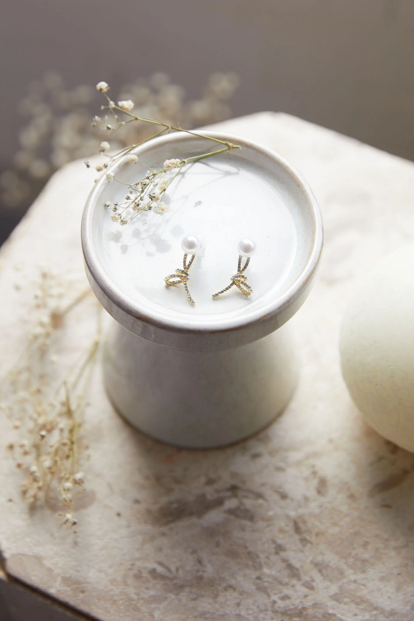 Carrie Crystal Knot Pearl Earrings Gold