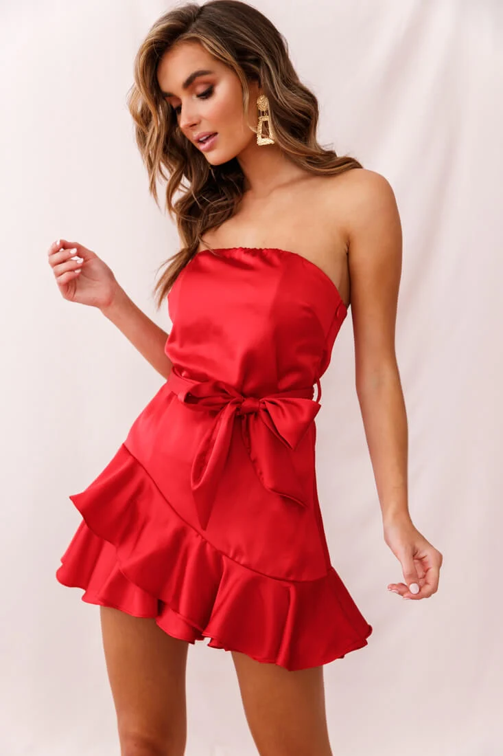 Thank U, Next Bandeau Satin Romper Red