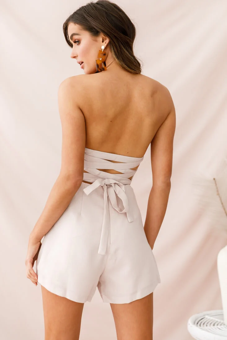 Minnie Strapless Skort Romper Beige