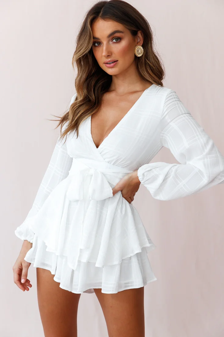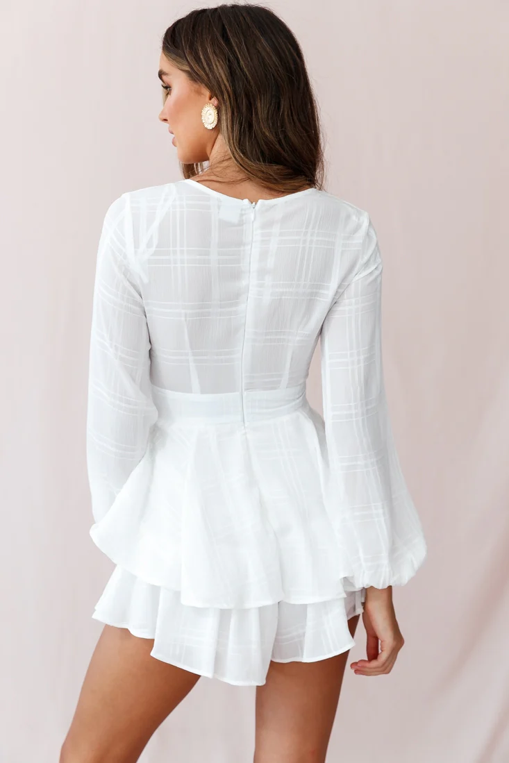 Maddox Fit & Flare Long Sleeve Romper White