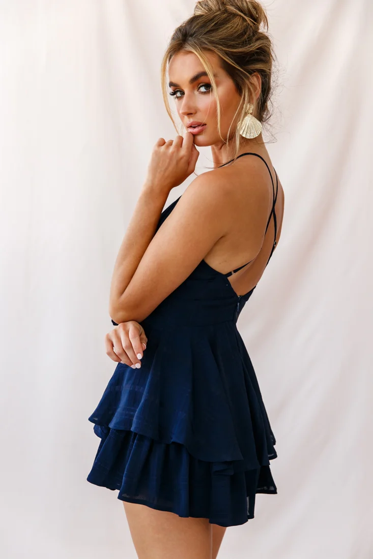 Maddox Fit & Flare Summer Romper Navy