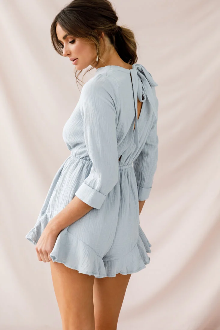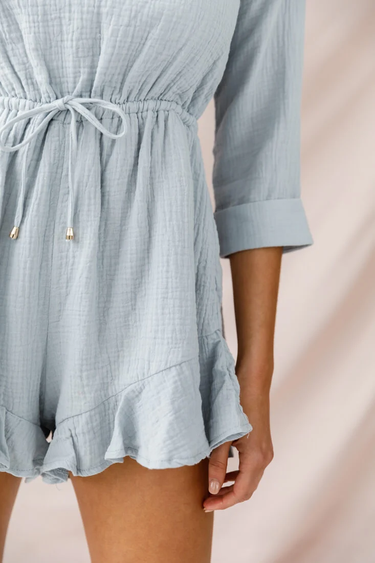 Mimi Three-Quarter Sleeve Drawstring Romper Grey