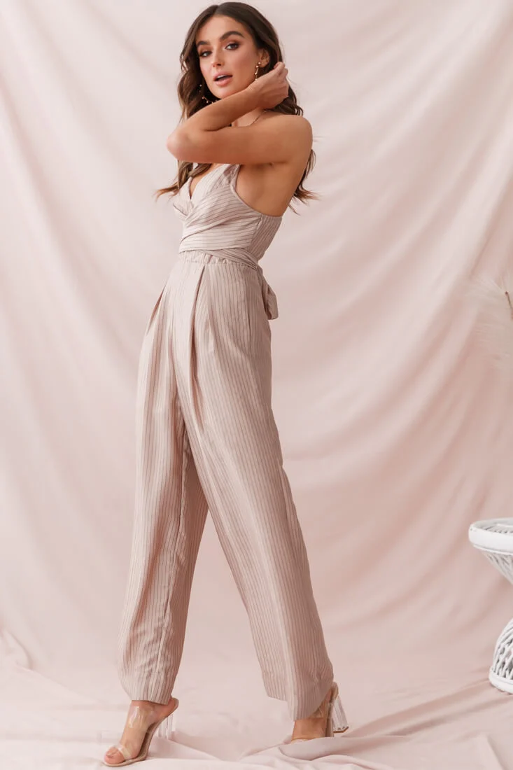 Nancy Wide Leg Pinstripe Jumpsuit Mocha