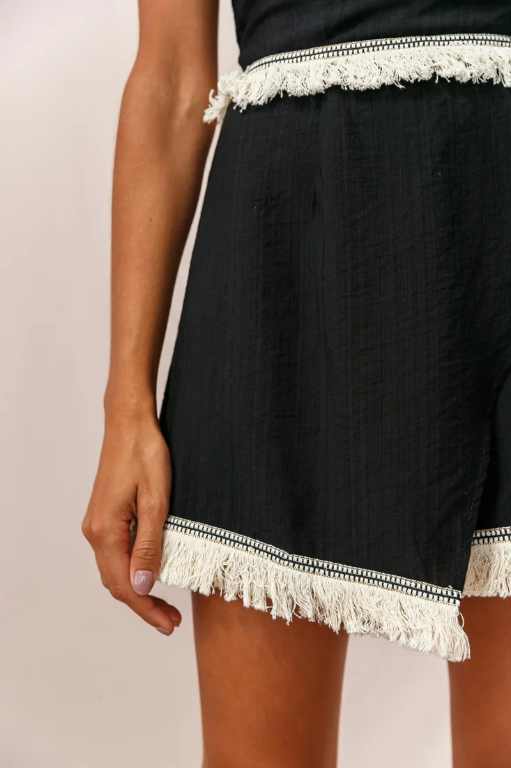 Bermuda Bandeau Tassel Trim Romper Black