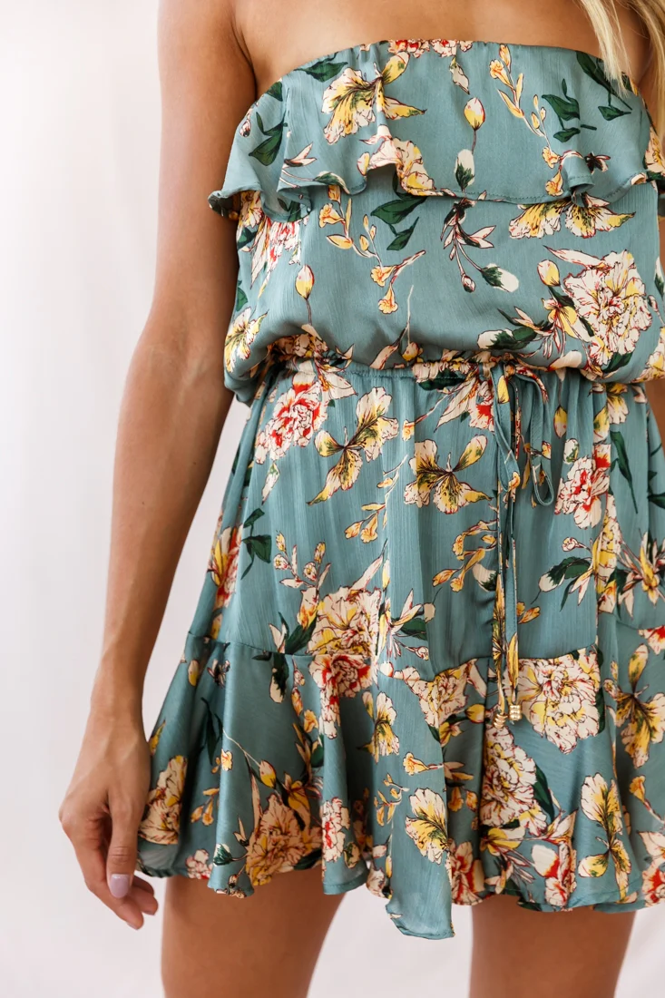Pasadena Bandeau Tie-Back Romper Sage