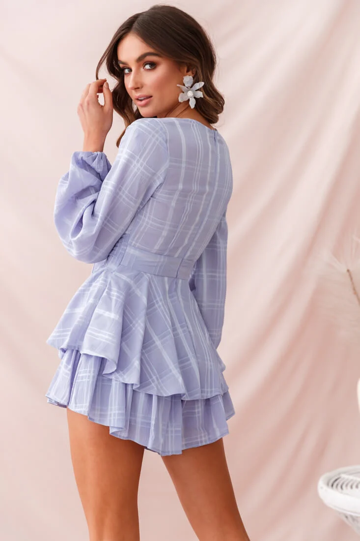 Maddox Fit & Flare Long Sleeve Romper Lavender
