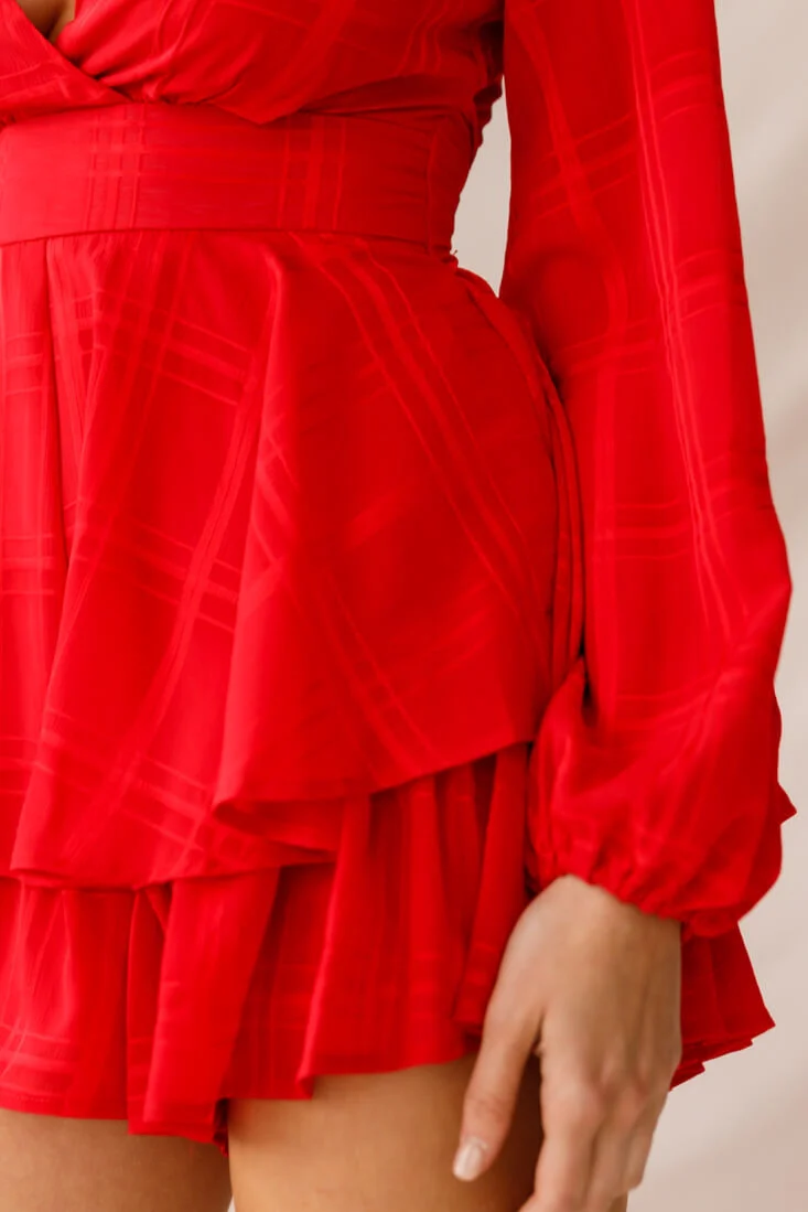 Christine Balloon Sleeve Romper Red