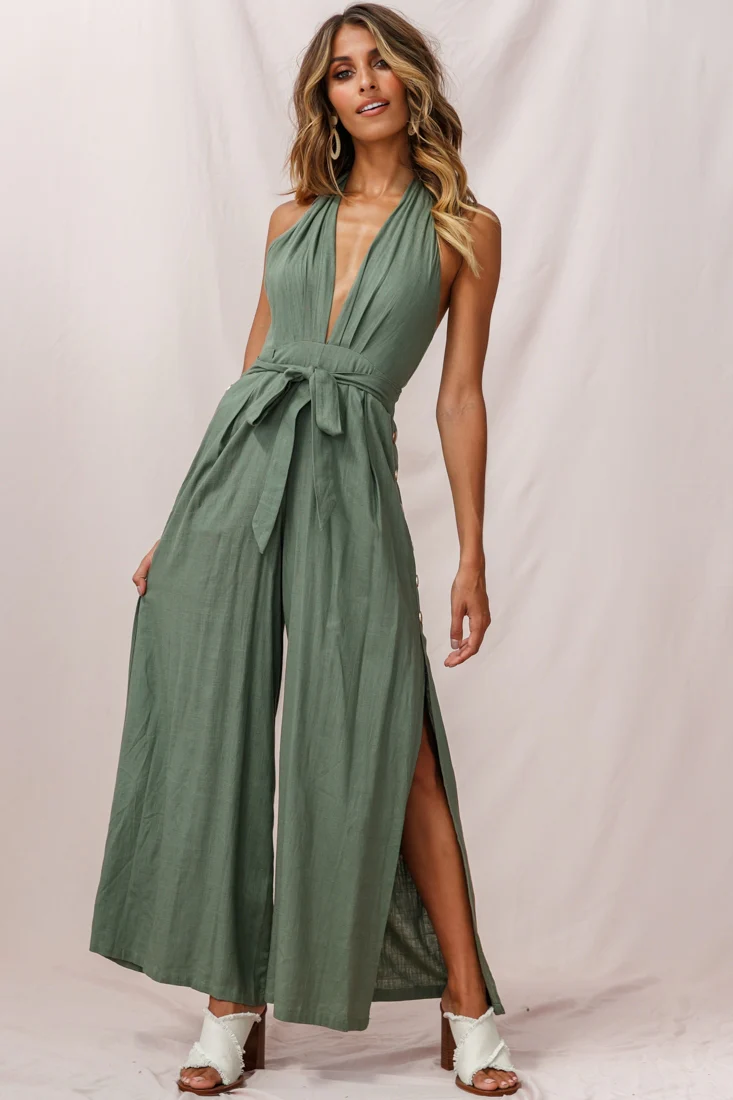 Aruba Wide Leg Halterneck Jumpsuit Khaki