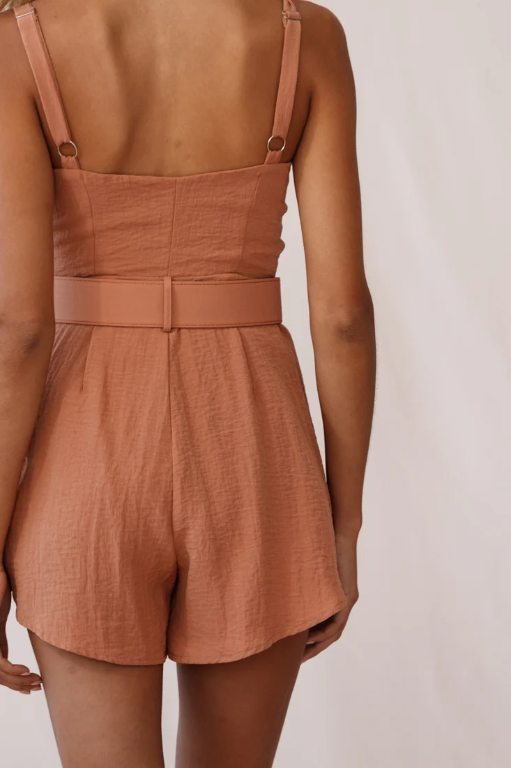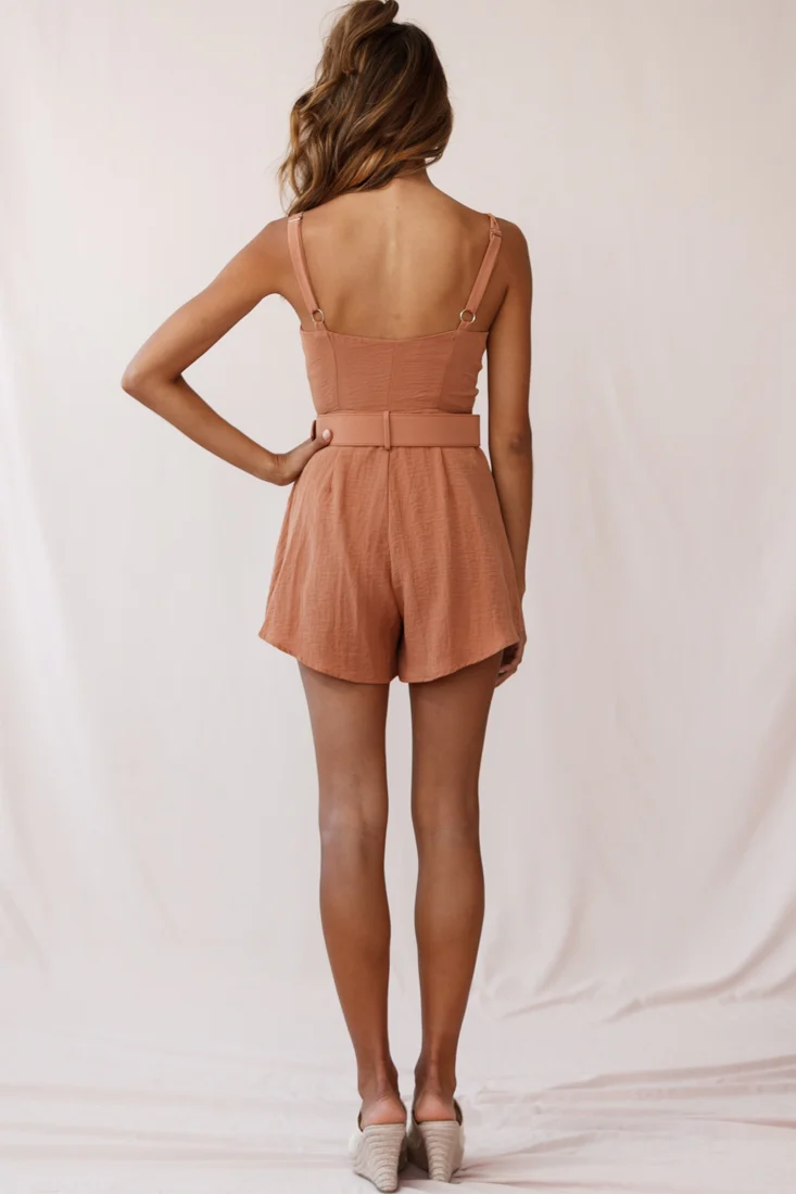 Crystal Tied Knot Belt Romper Tan