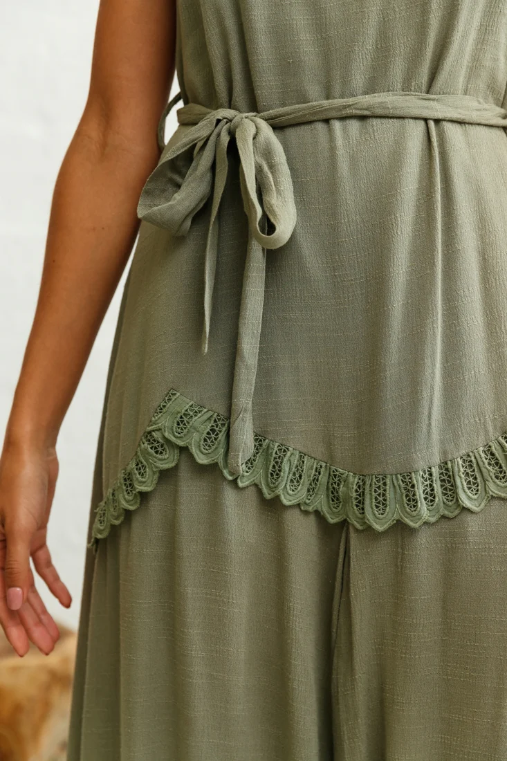 Talitha Tie Strap Wide Leg Jumpsuit Khaki