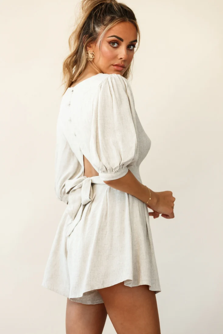 Jinka Balloon Sleeve Structured Bodice Romper Natural