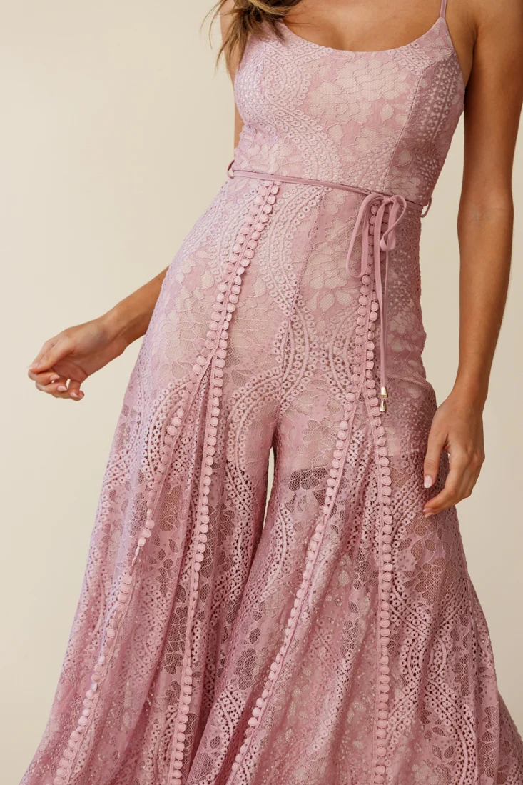 Palm Springs Lace Jumpsuit Blush Pink