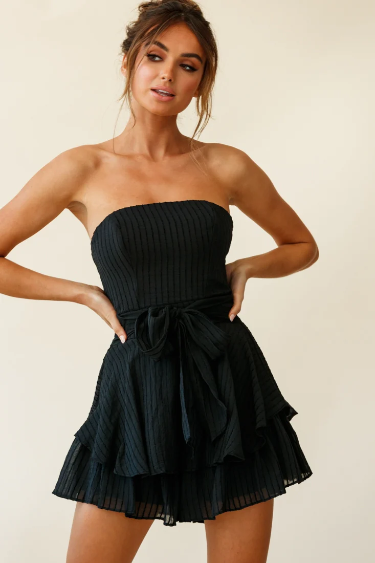 Maddox Fit & Flare Bandeau Romper Black