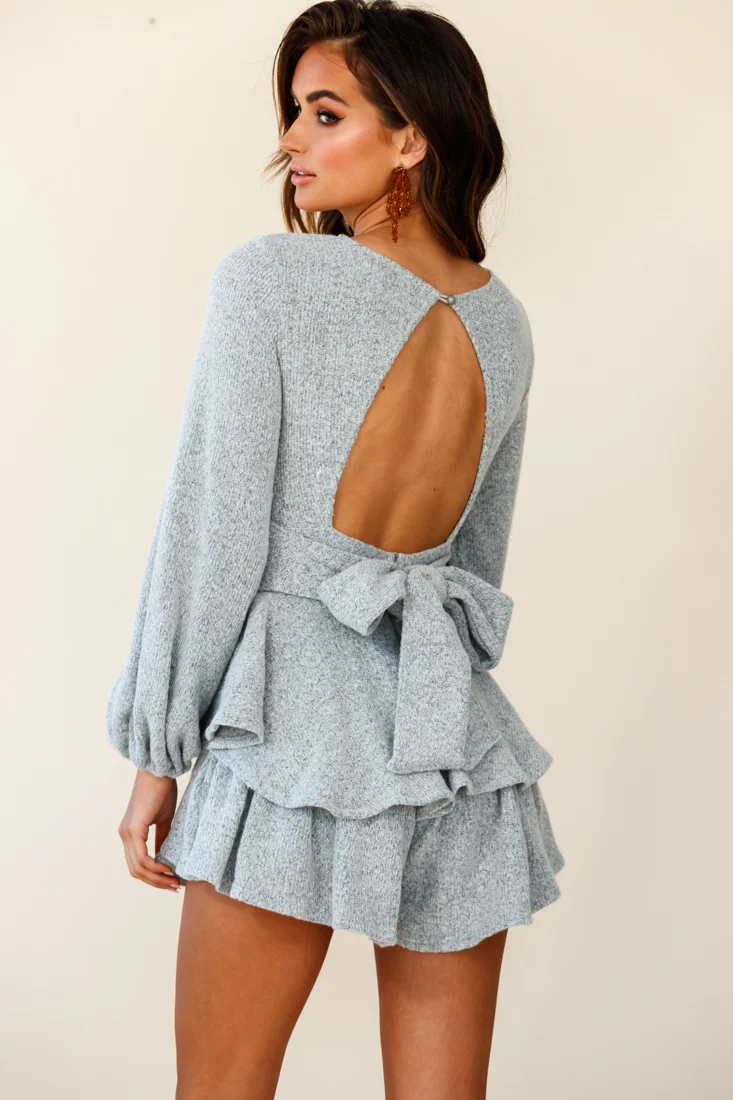 Talk About It Balloon Sleeve Open Back Knit Romper Grey