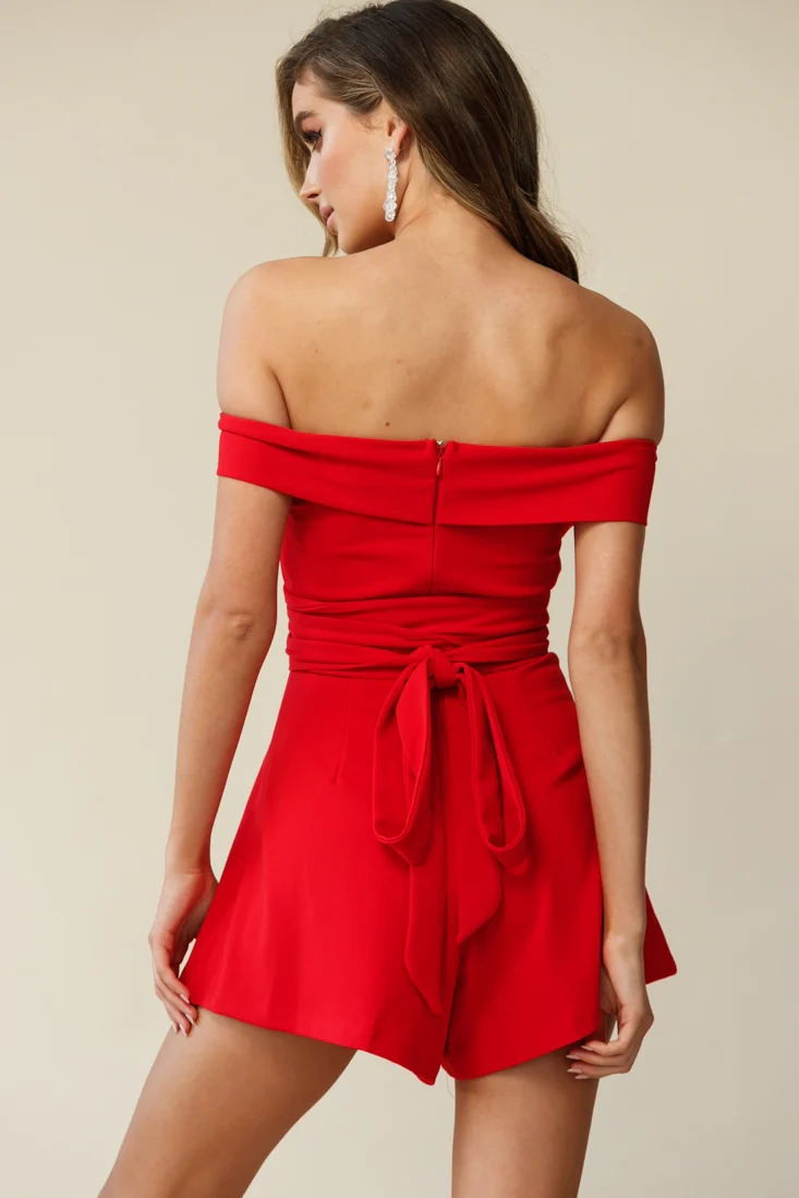 Crossroads Bardot Neckline Wrap Torso Romper Red