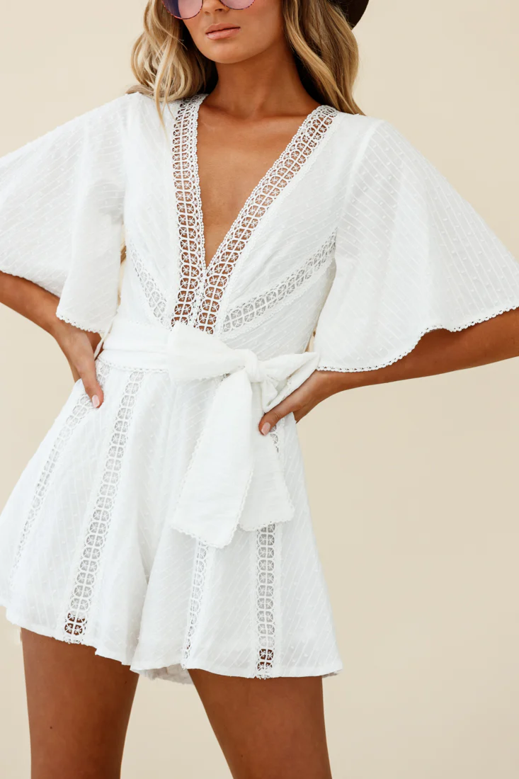 Shaken, Not Stirred Frill Trim Cut-Out Back Romper White