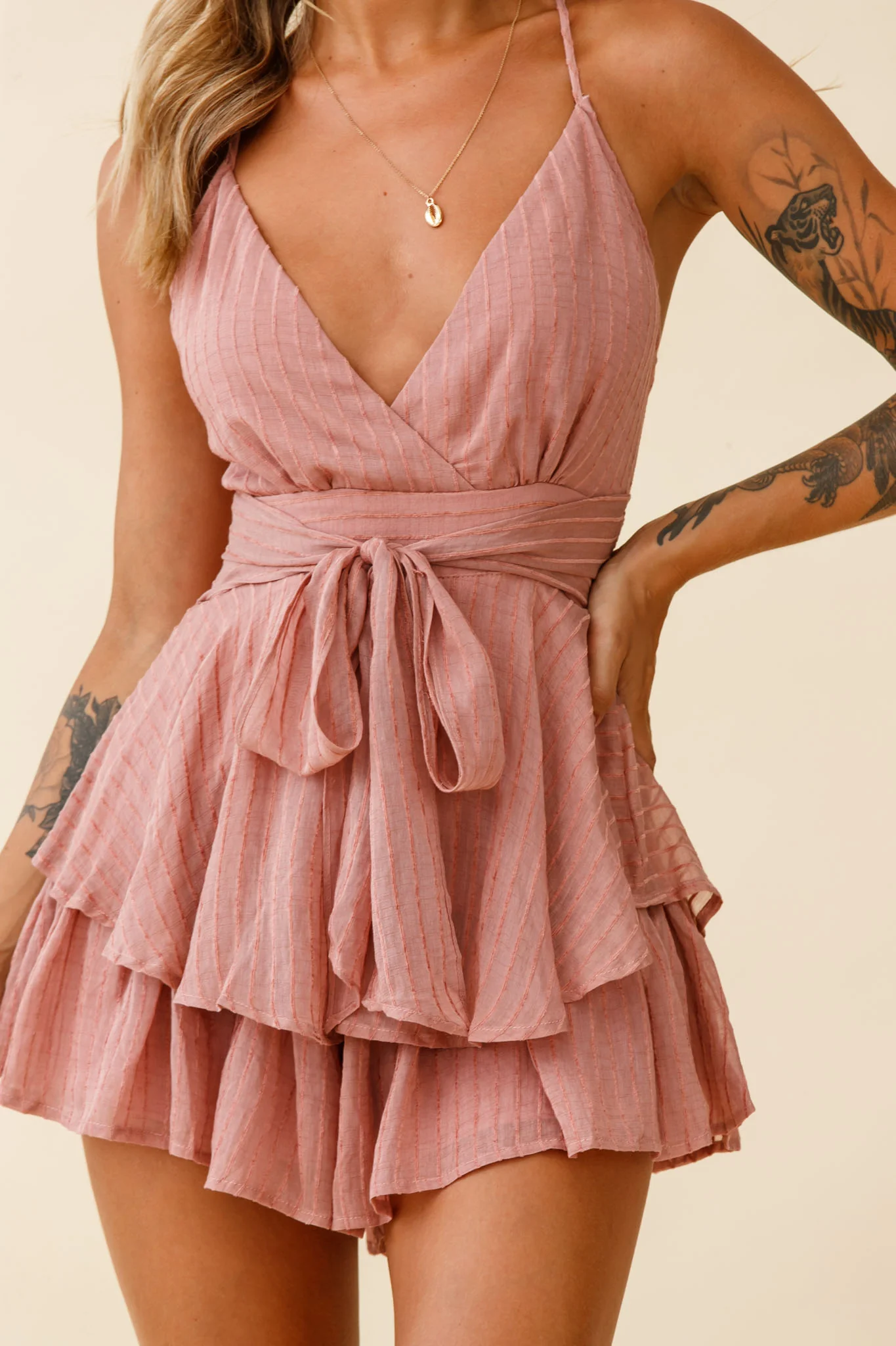 Wendy Ruched Bust Layered Ruffle Romper Mauve