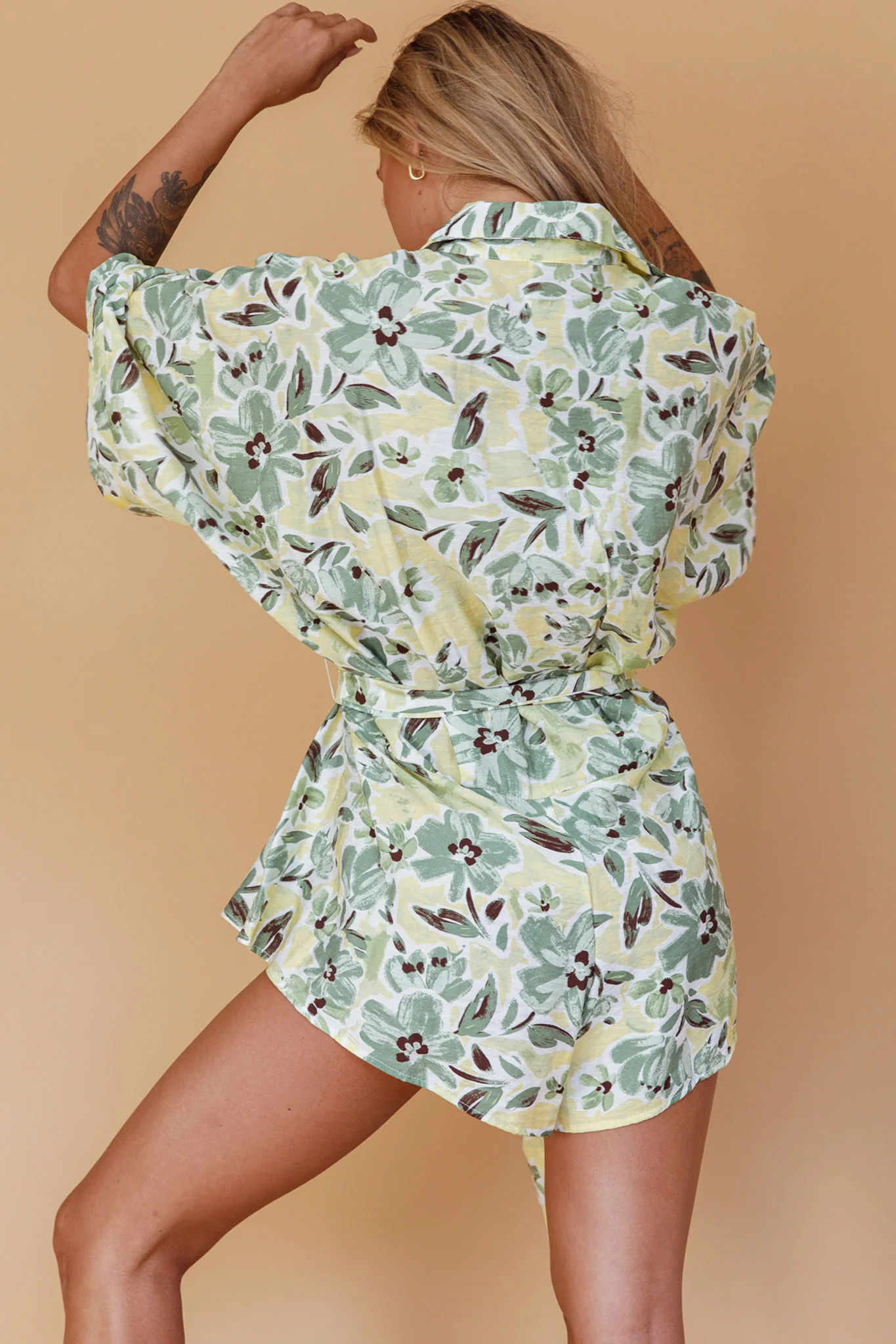Well Versed Long Sleeve Flounce Romper Forest Green