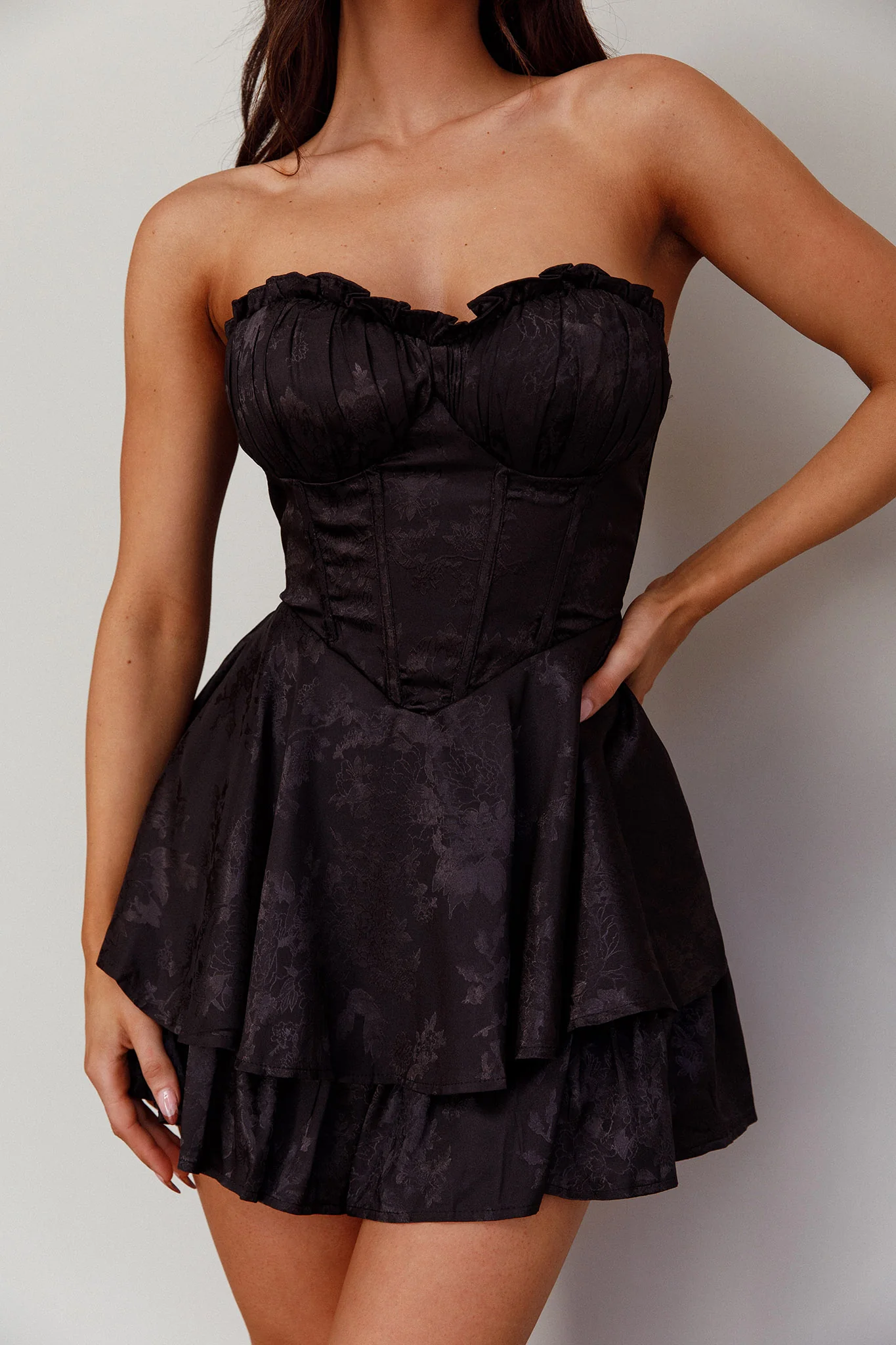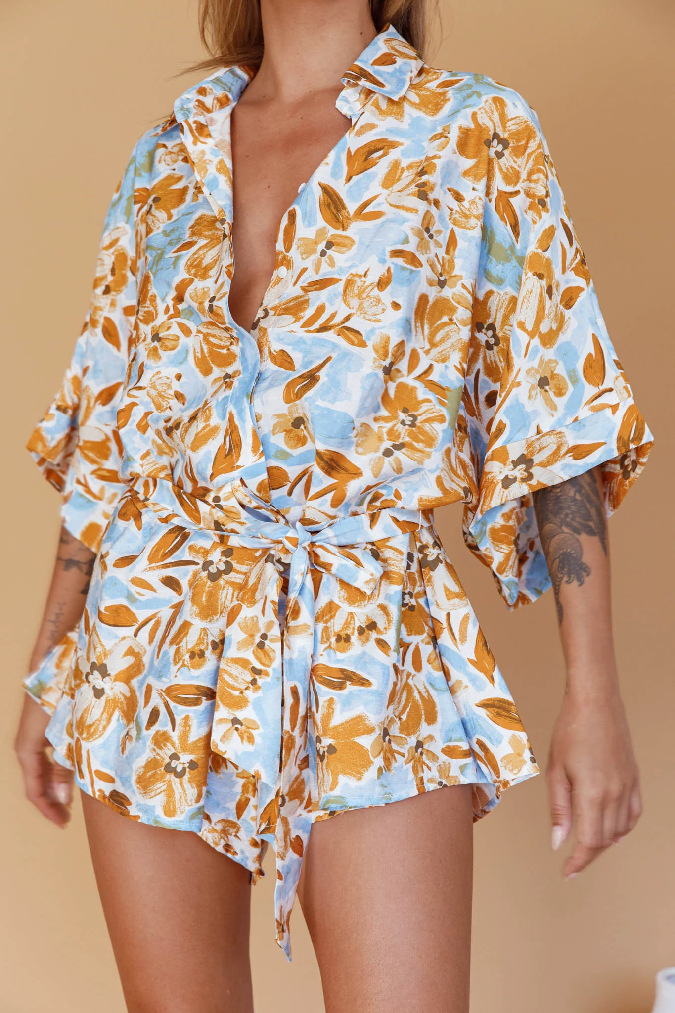 Maddox Fit & Flare Long Sleeve Romper Floral Vine Navy