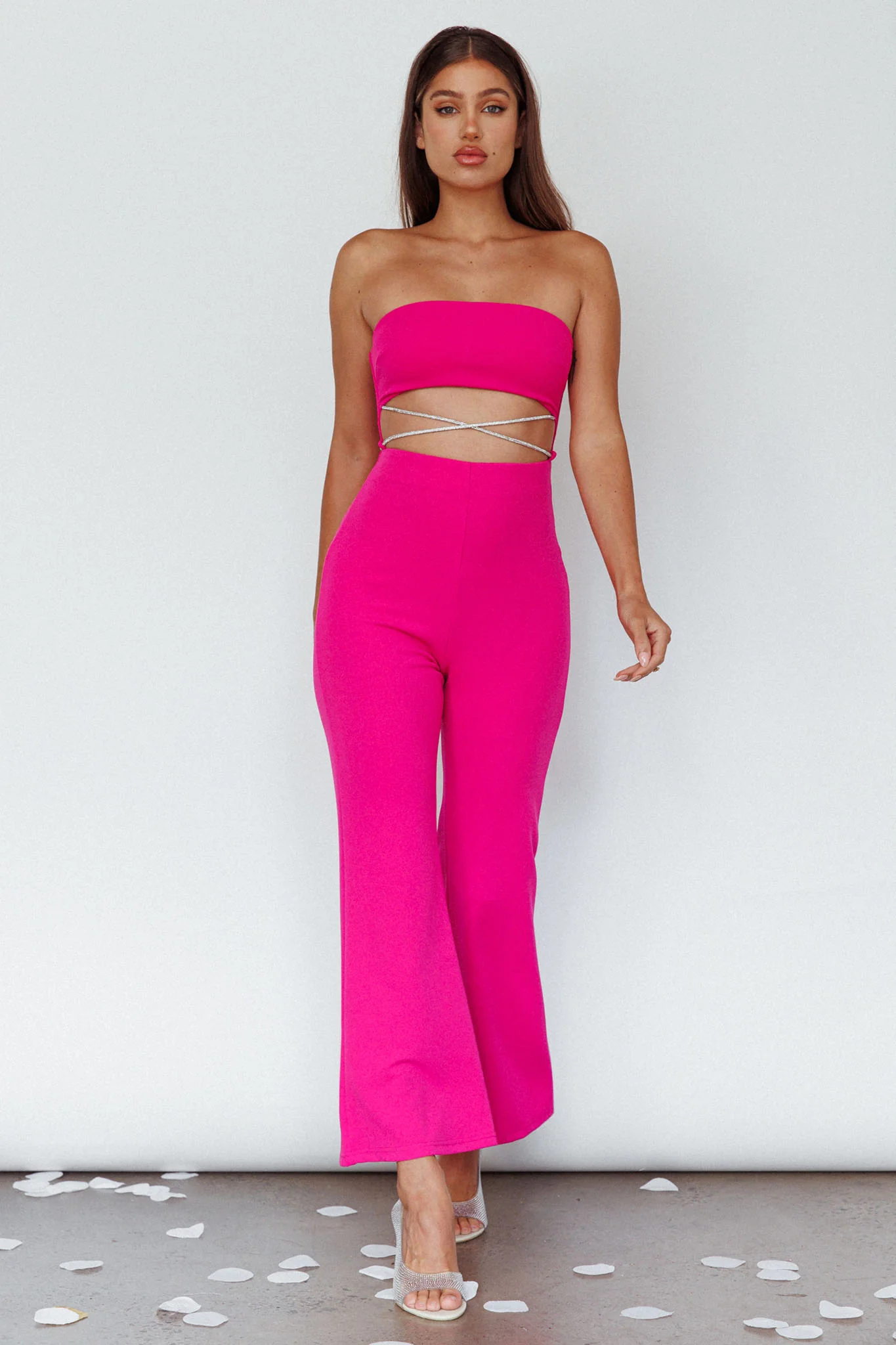 Nohemi Strapless Diamante Jumpsuit Fuchsia
