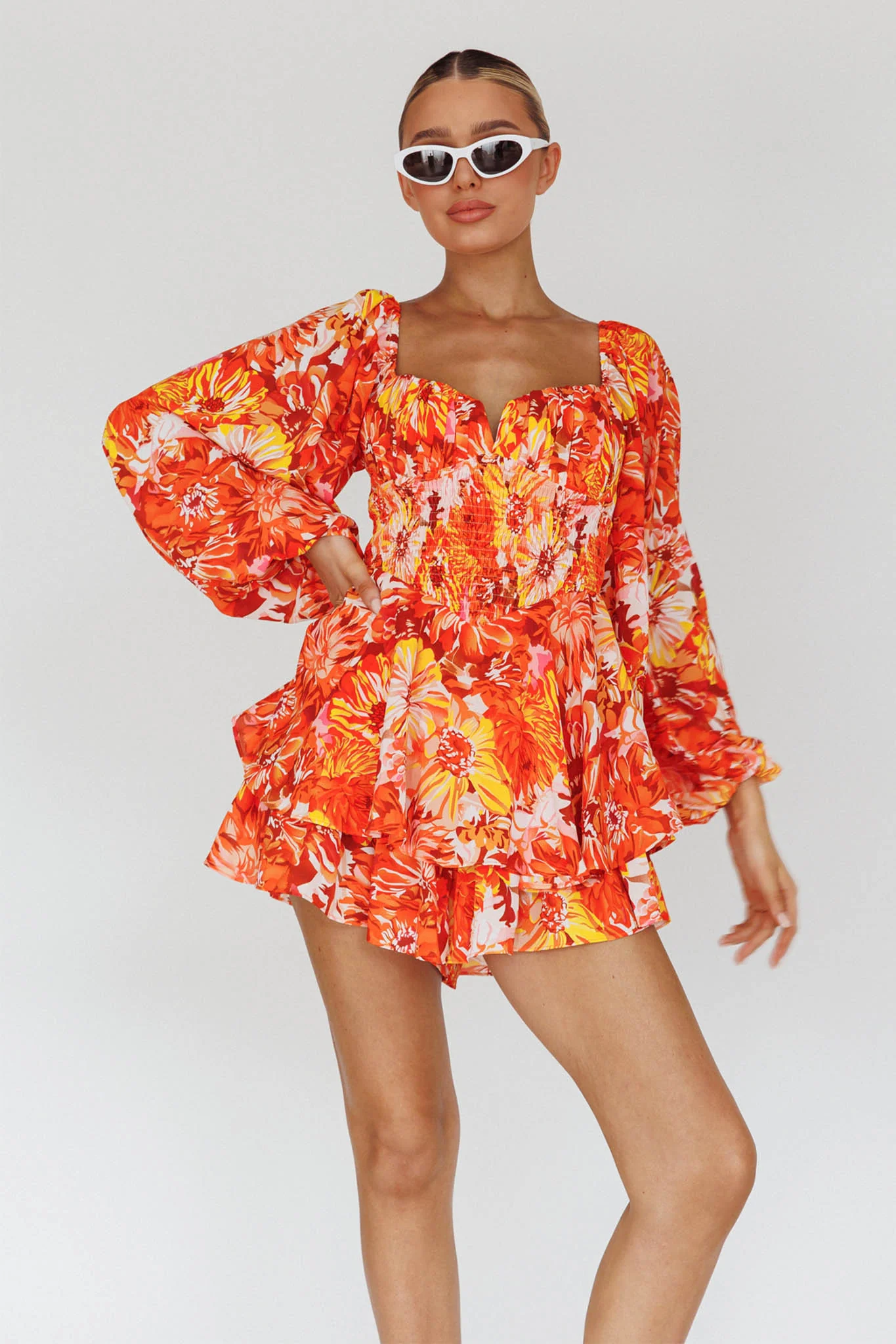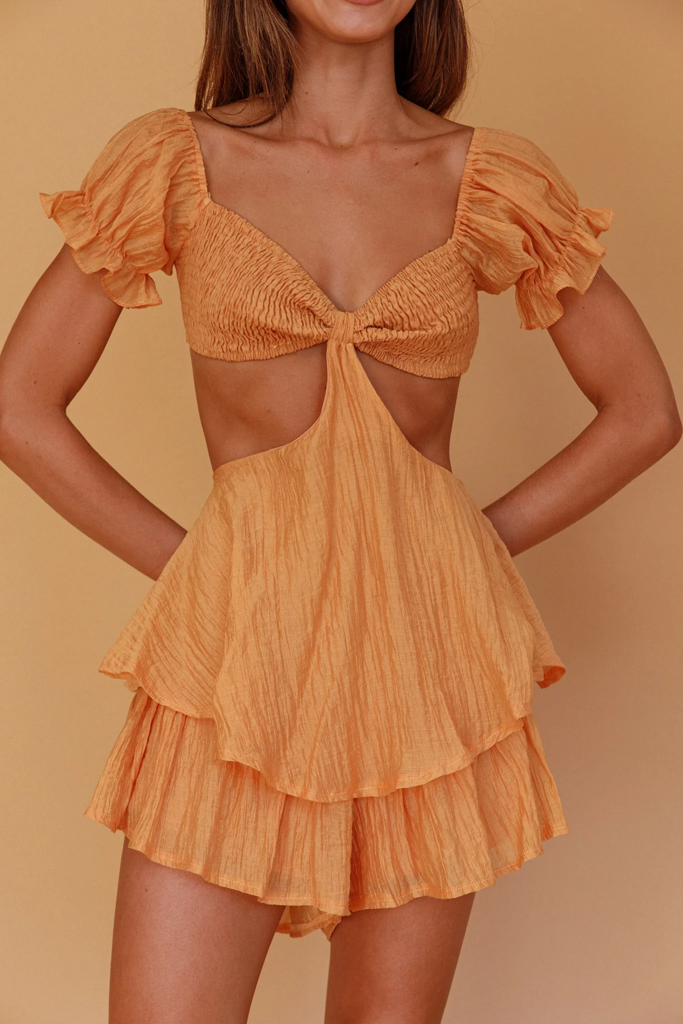 Vacay Mode Shirred Bust Romper Orange