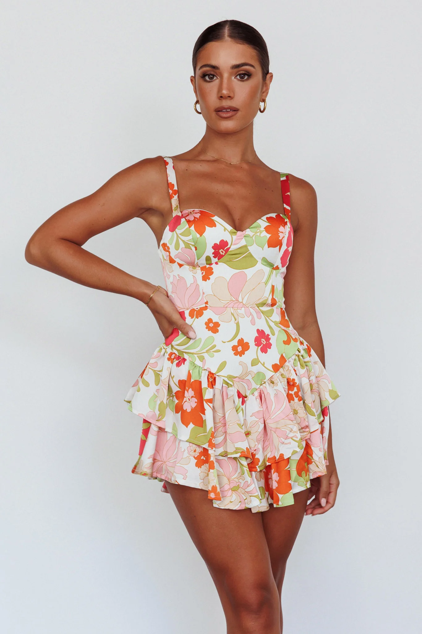 Carino Frill Trim Pleated Romper Floral Yellow