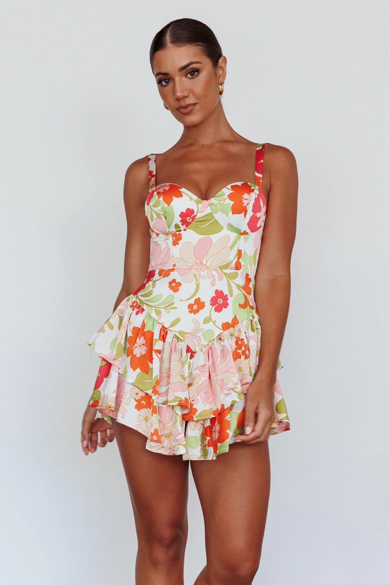 Tuscan Summer Flounce Romper Floral White