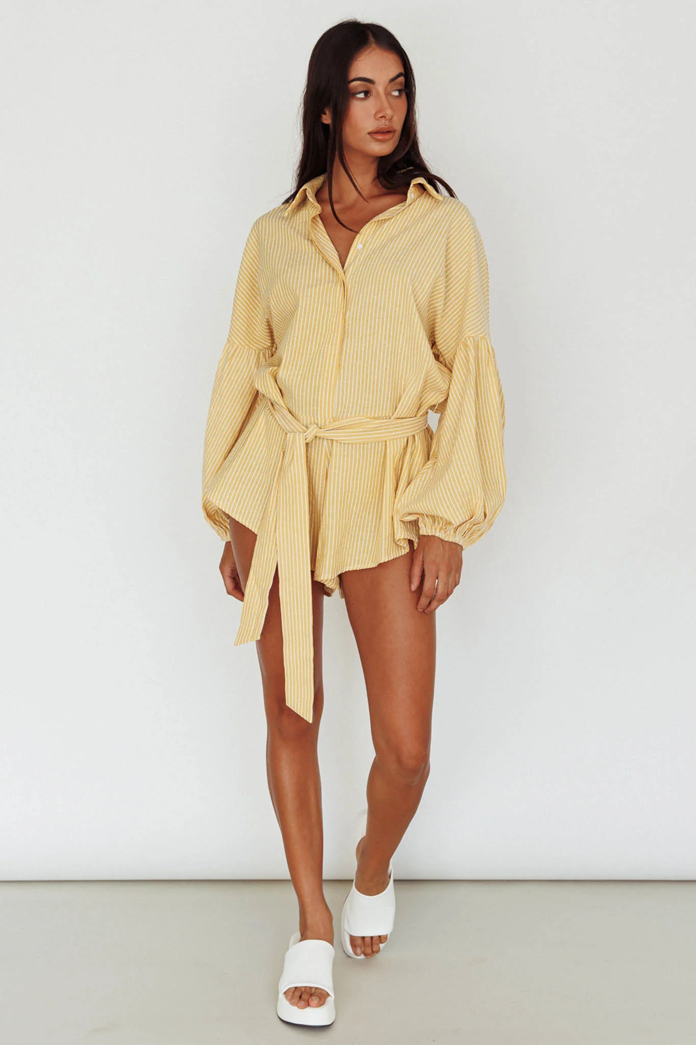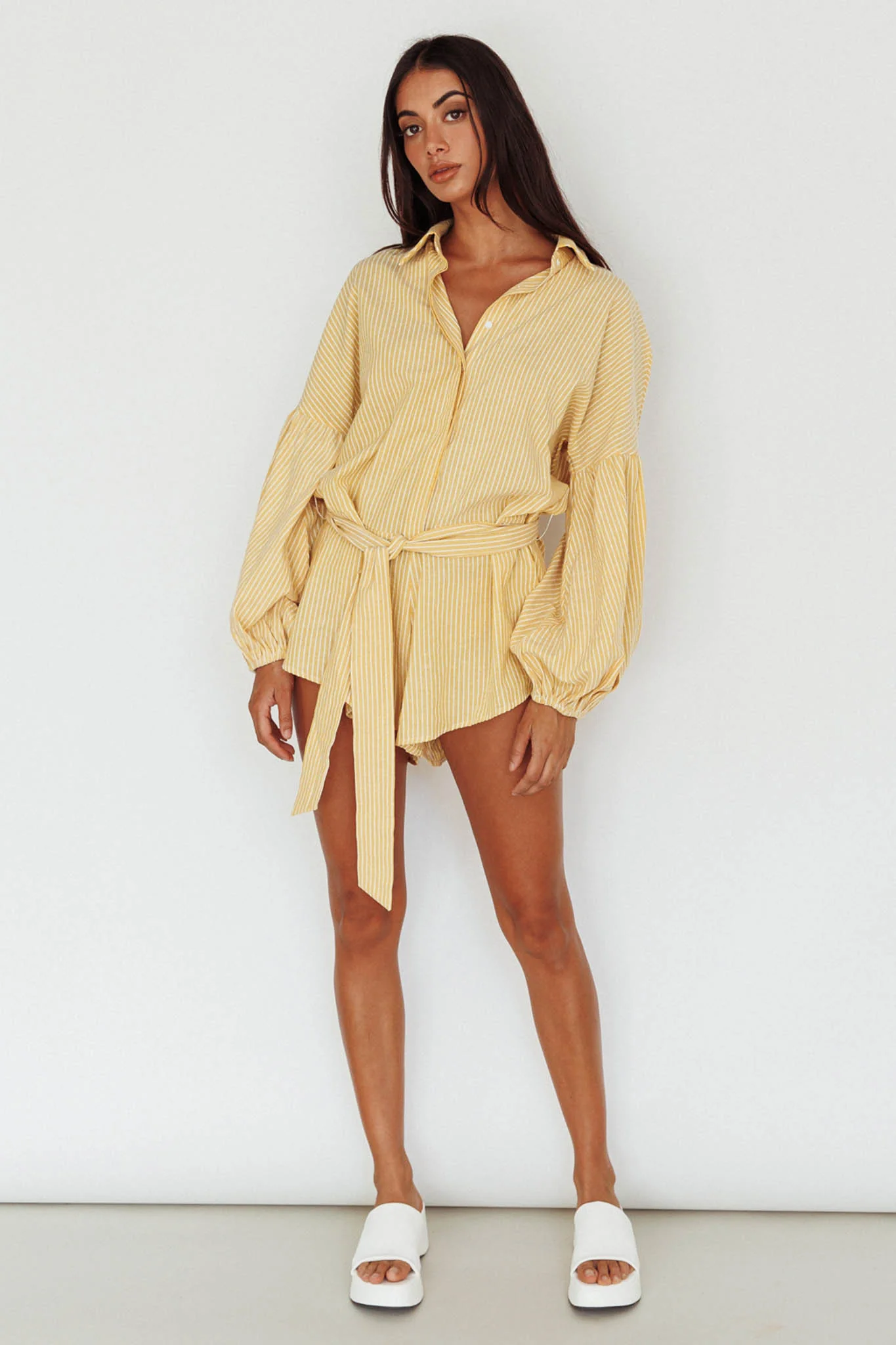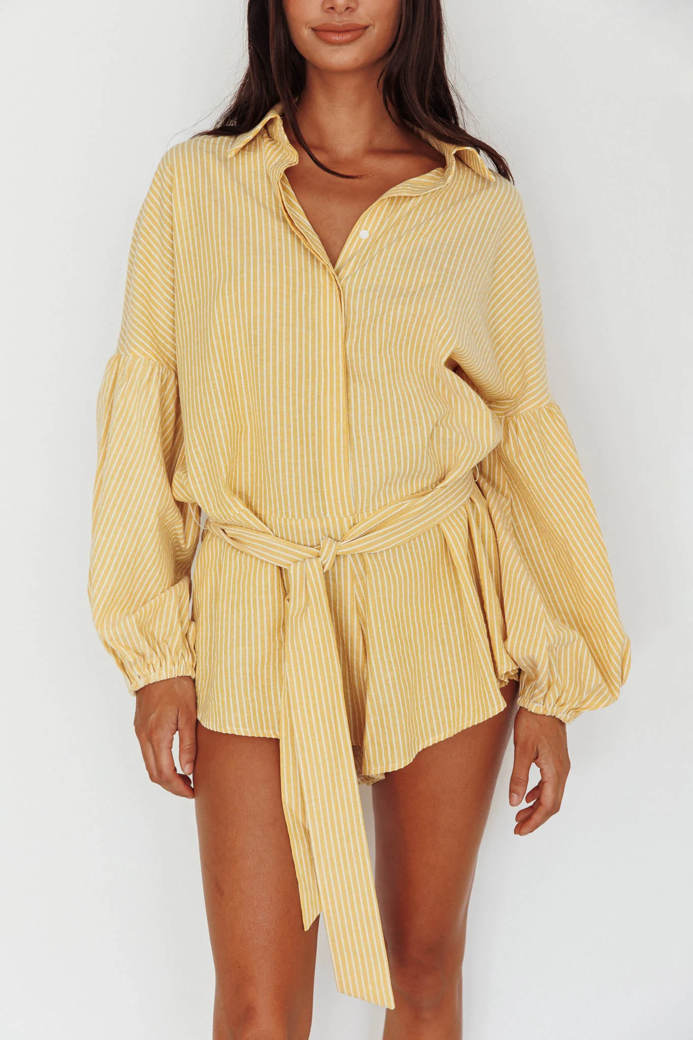 Daytona Beach Long Sleeve Shirt Romper Yellow Stripe