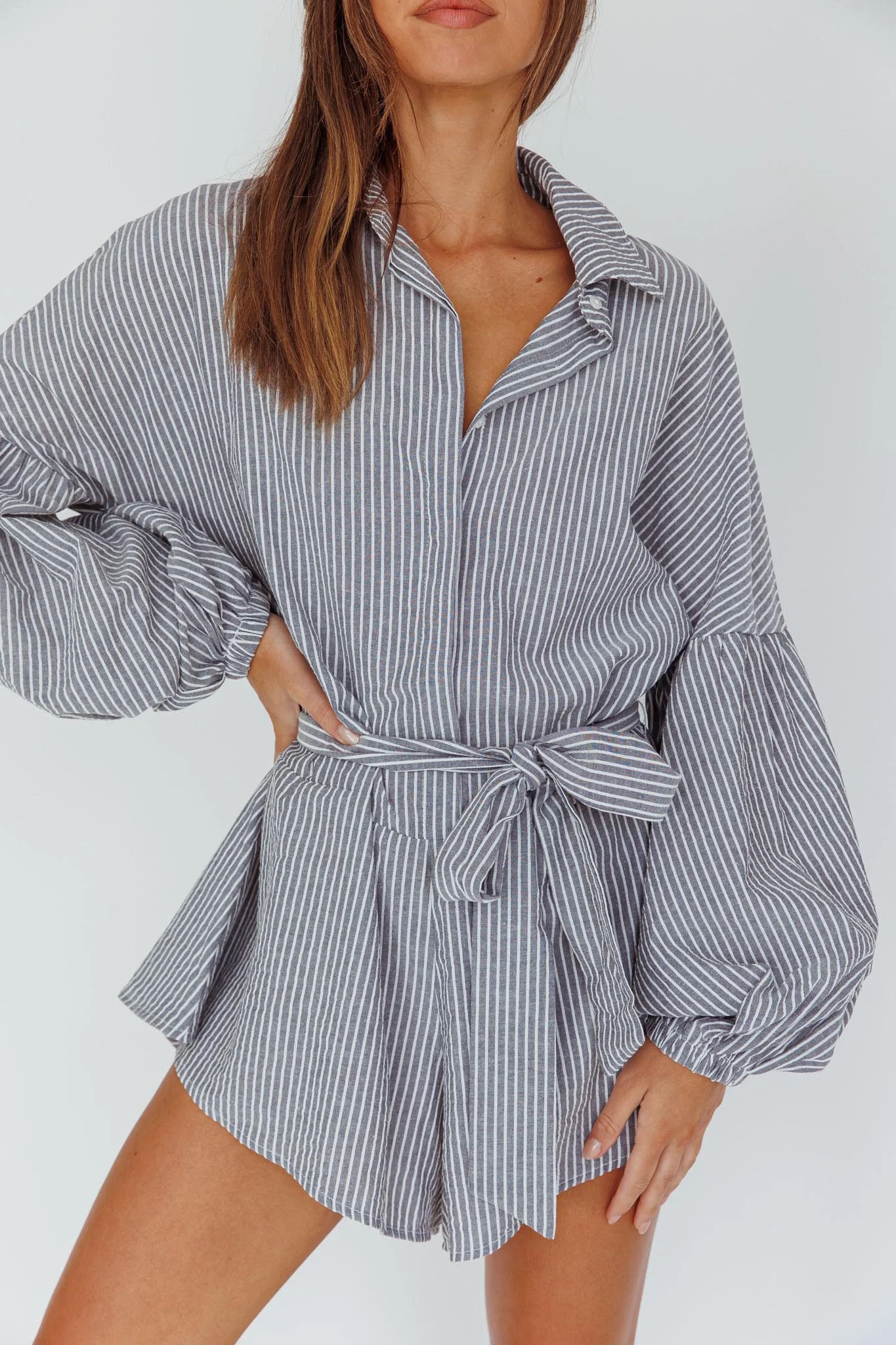 Daytona Beach Long Sleeve Shirt Romper Pinstripe