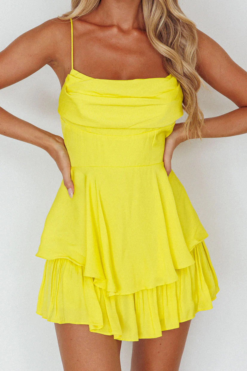 Well Versed Cowl Neck Flounce Romper Bright Yellow