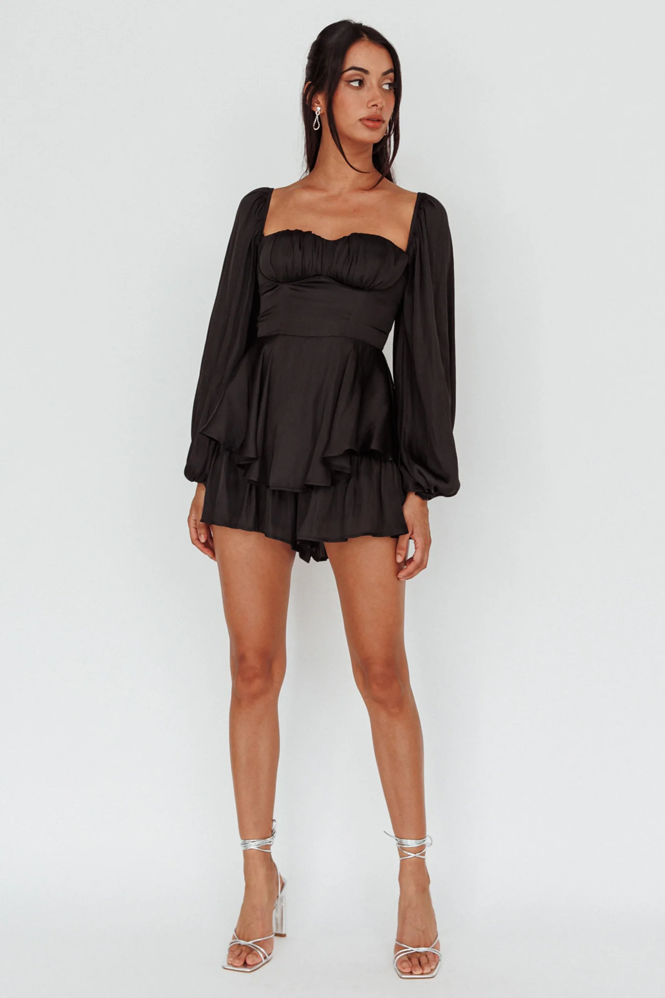 New Light Balloon Sleeve Romper Black