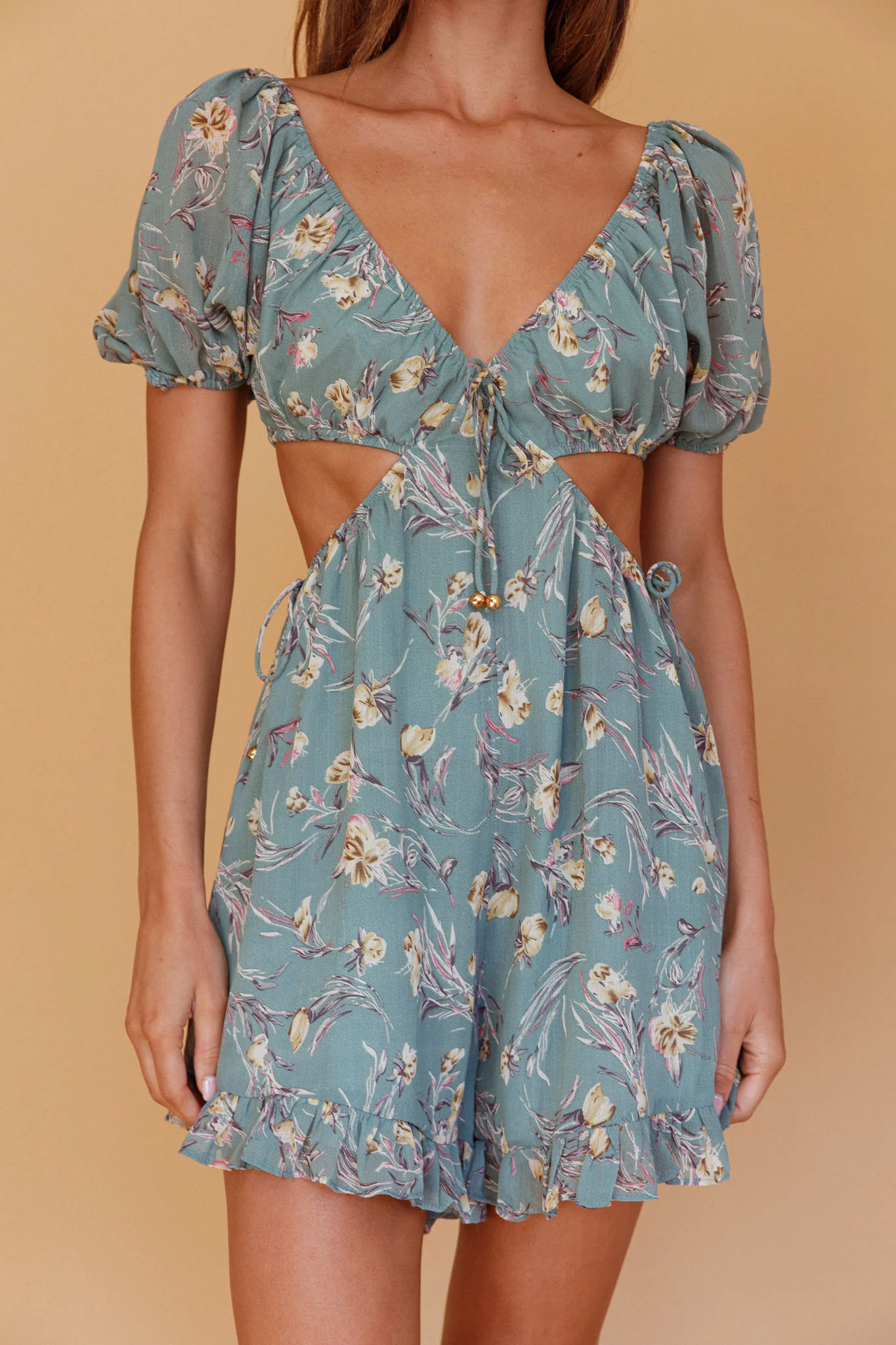 Fancy Free Cut-Out Waist Romper Floral Sage