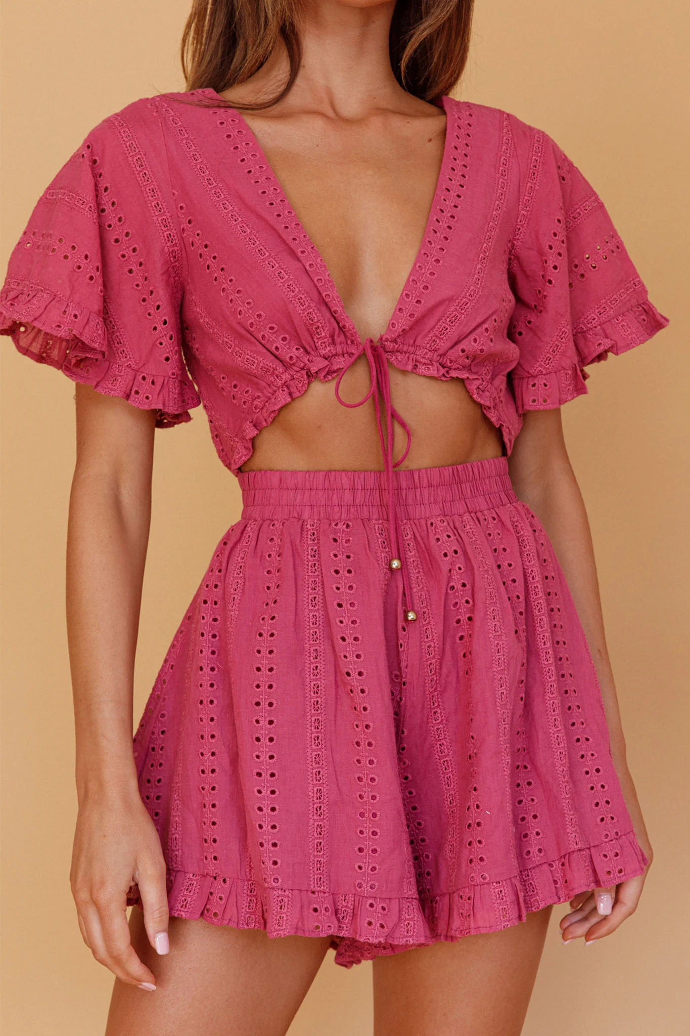Endless Weekend Tied Bust Romper Rose