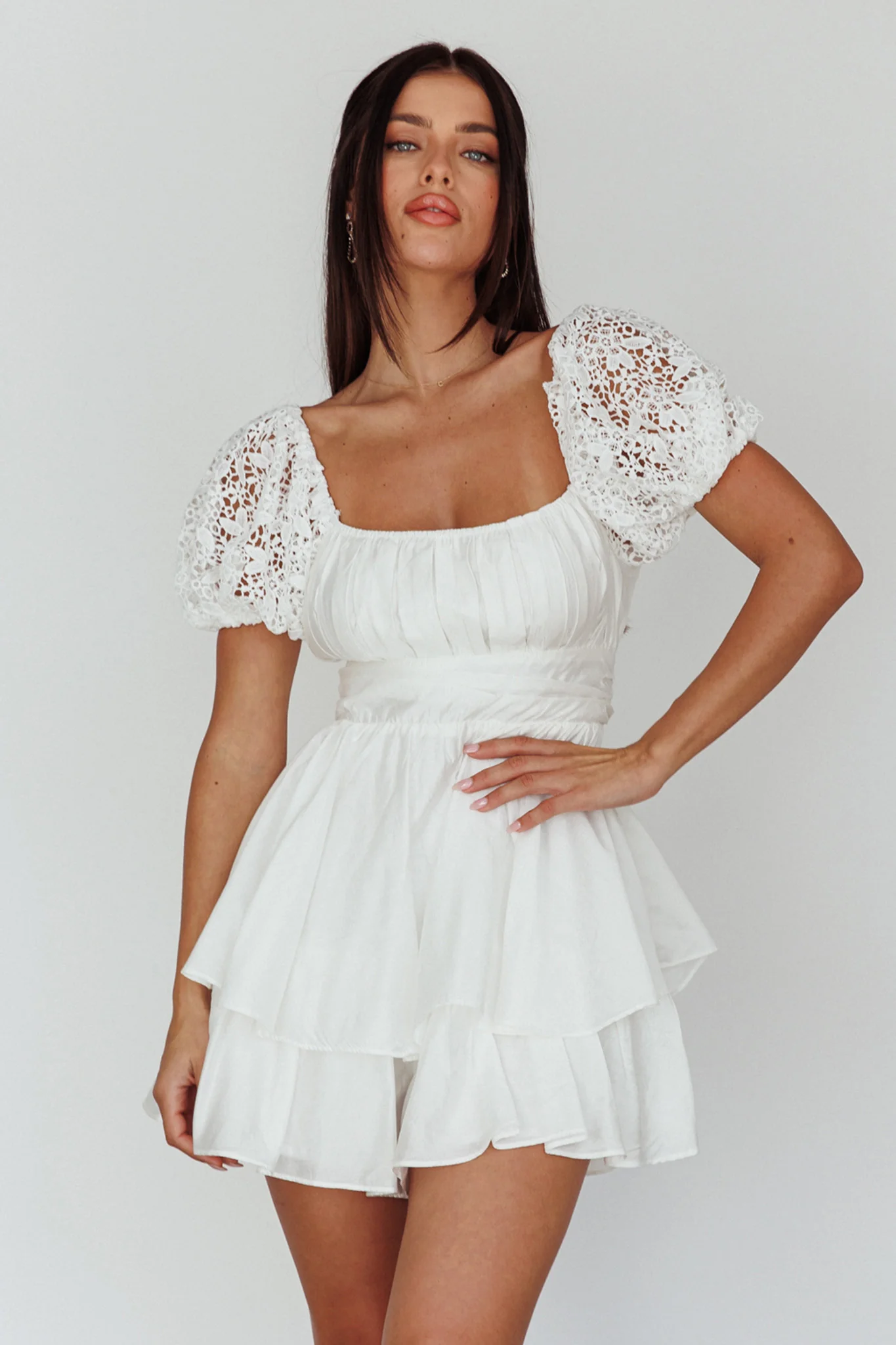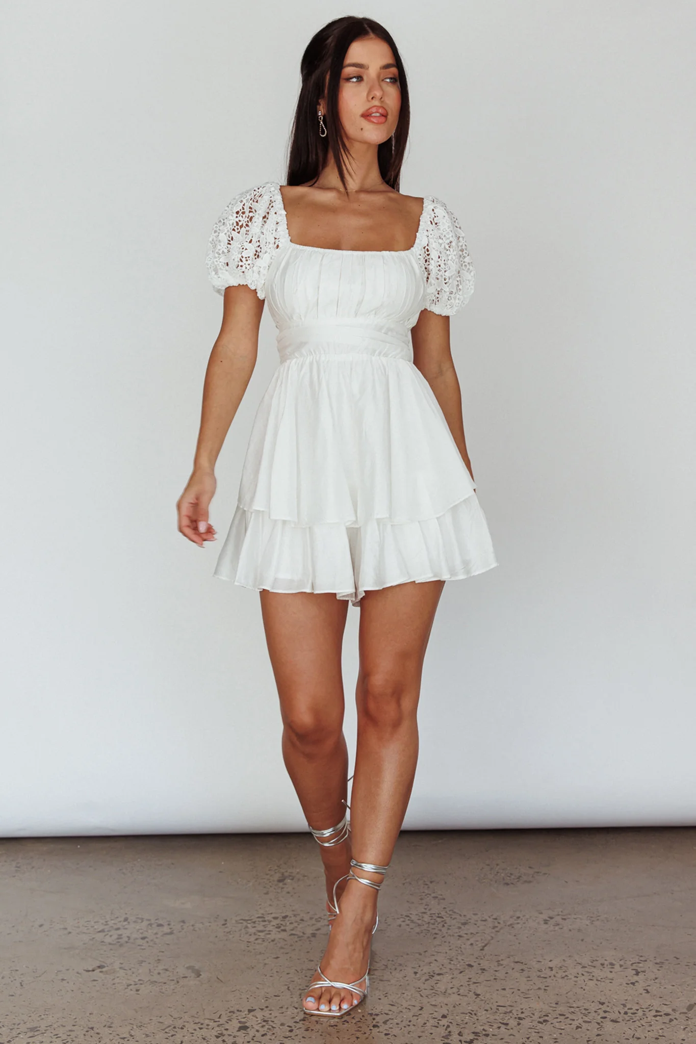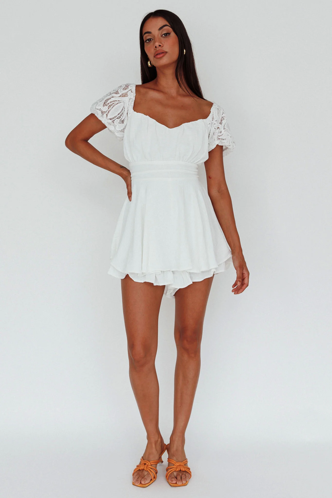 Hold My Halo Lace Sleeve Romper White