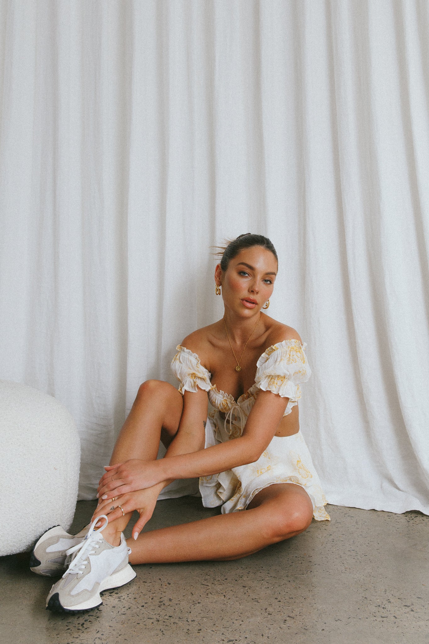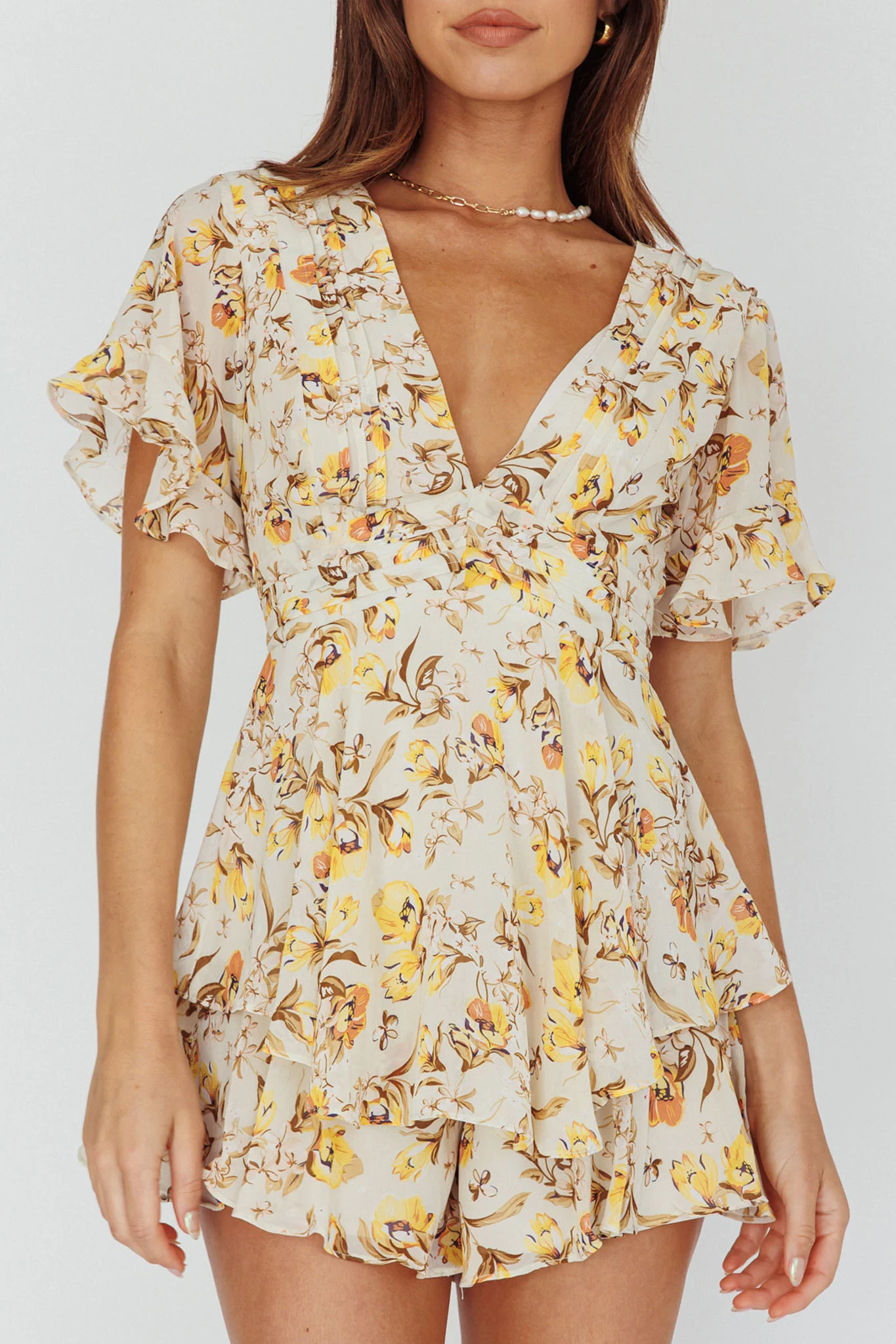Golden Light Pintuck Pleat Romper Floral Beige
