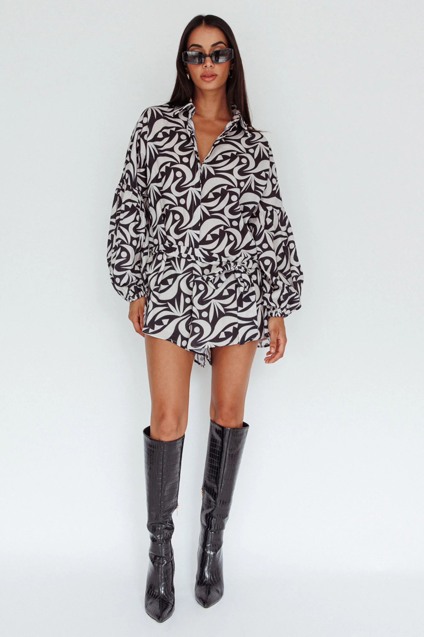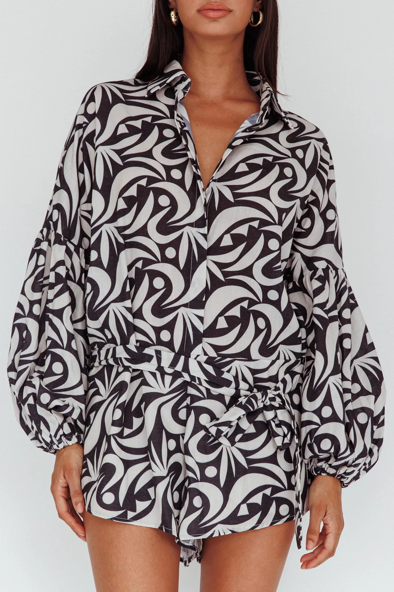 Daytona Beach Long Sleeve Shirt Romper Print Black