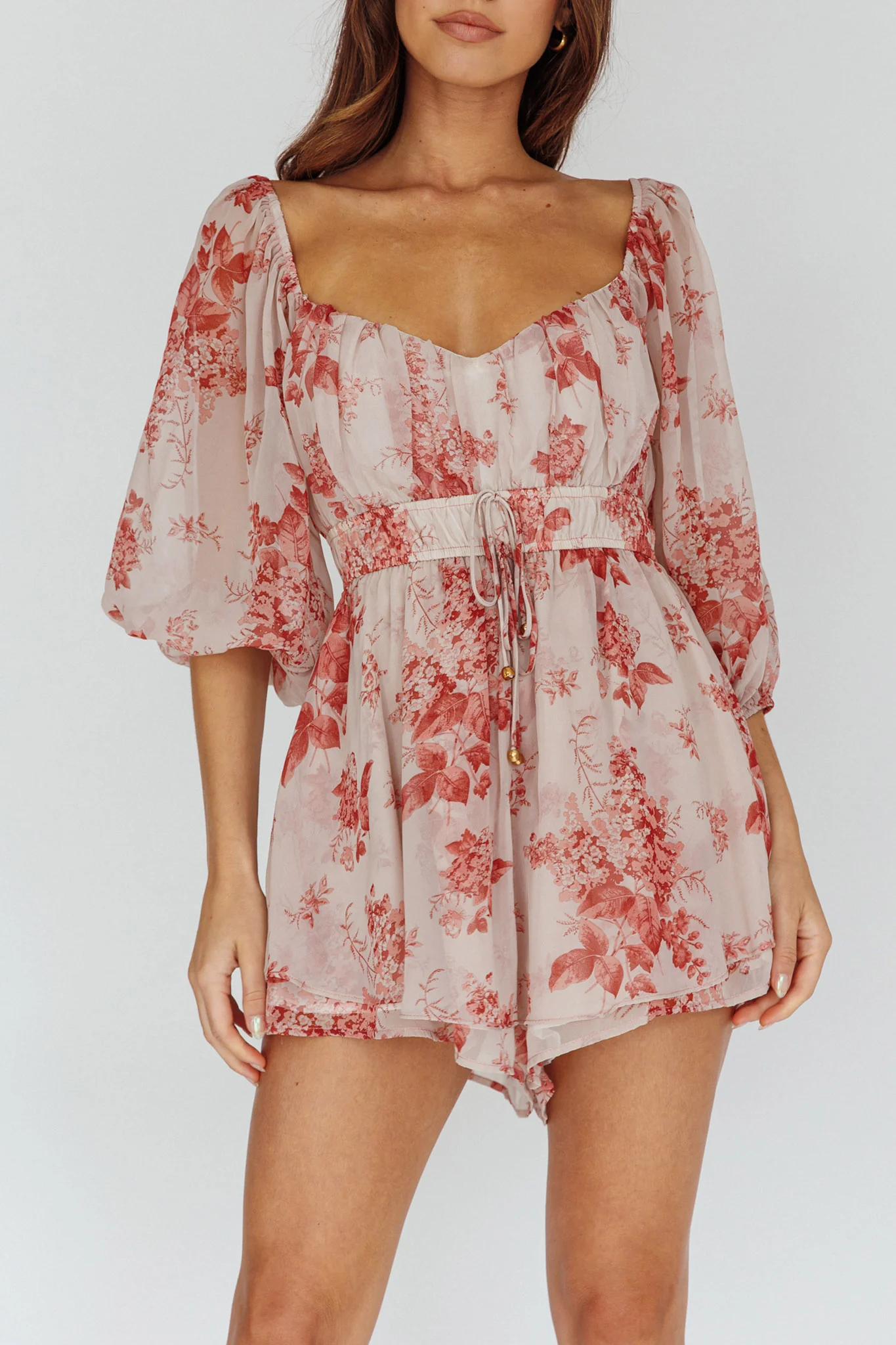 Lotus Sun Balloon Sleeve Romper Blush