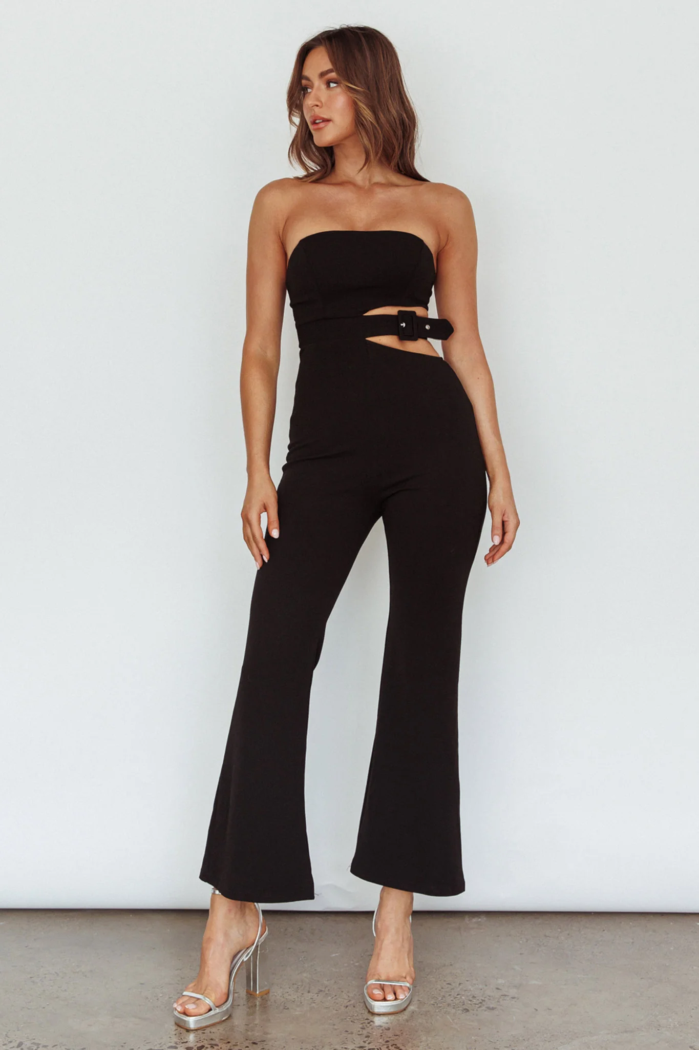 Glisten Cut-Out Buckle Waist Jumpsuit Black
