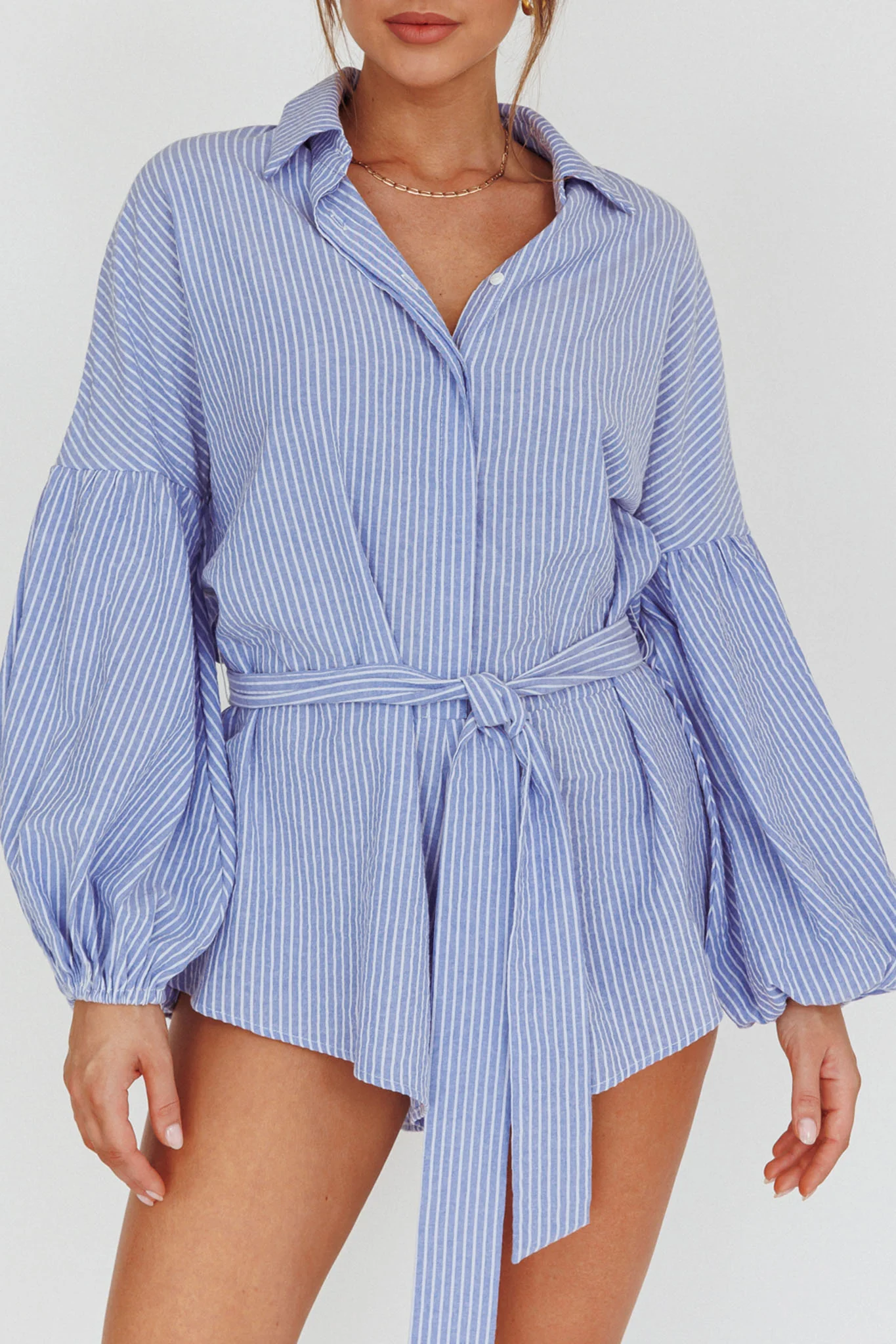 Daytona Beach Long Sleeve Shirt Romper Blue Stripe