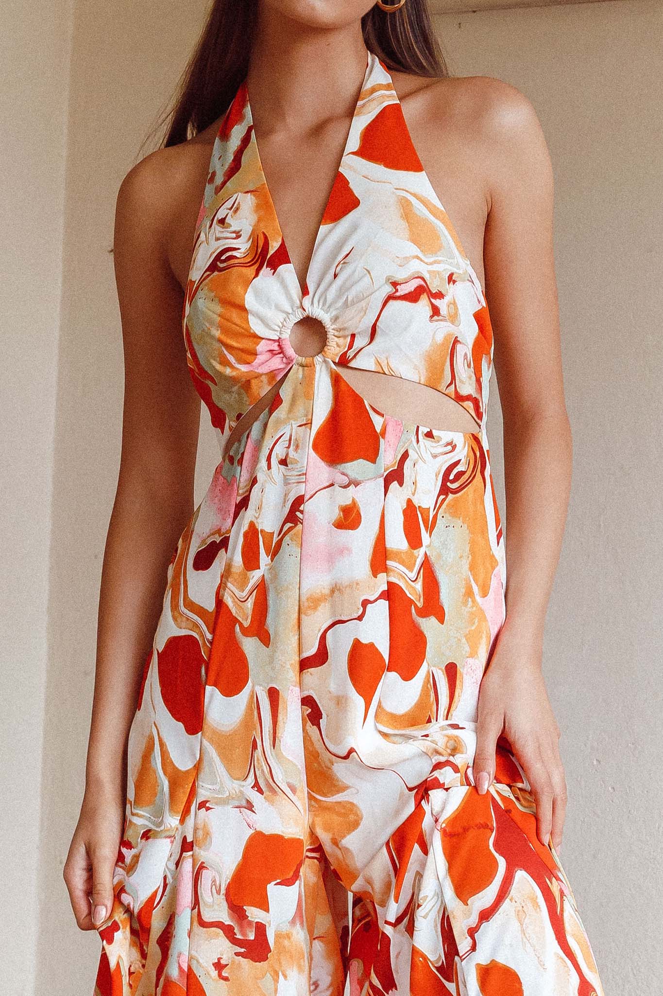 Solstice Sun Halterneck Jumpsuit Swirl Orange