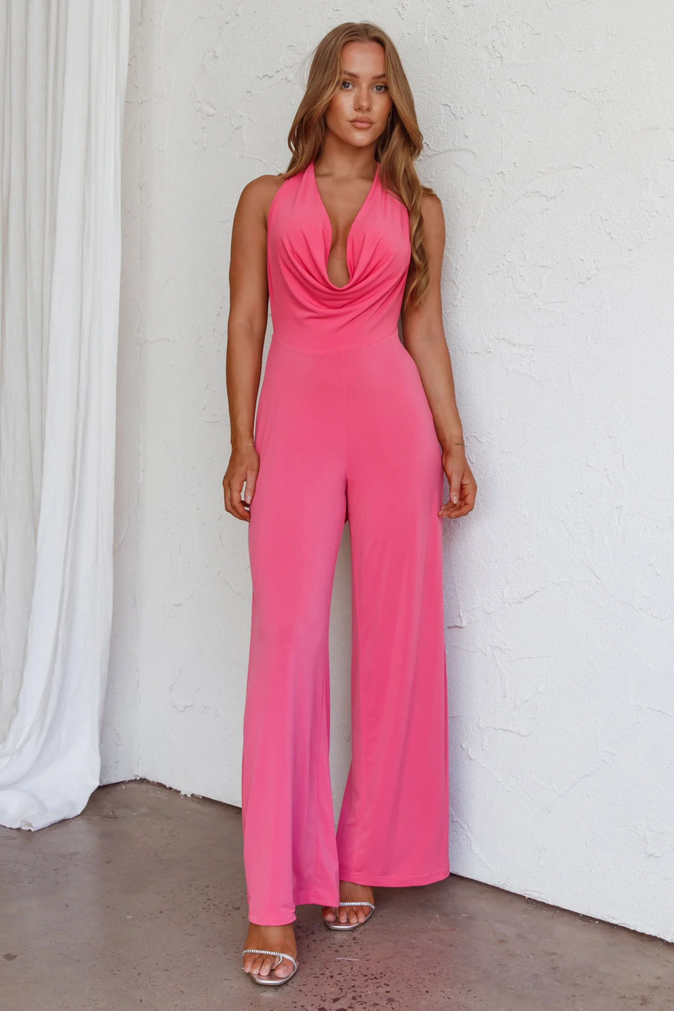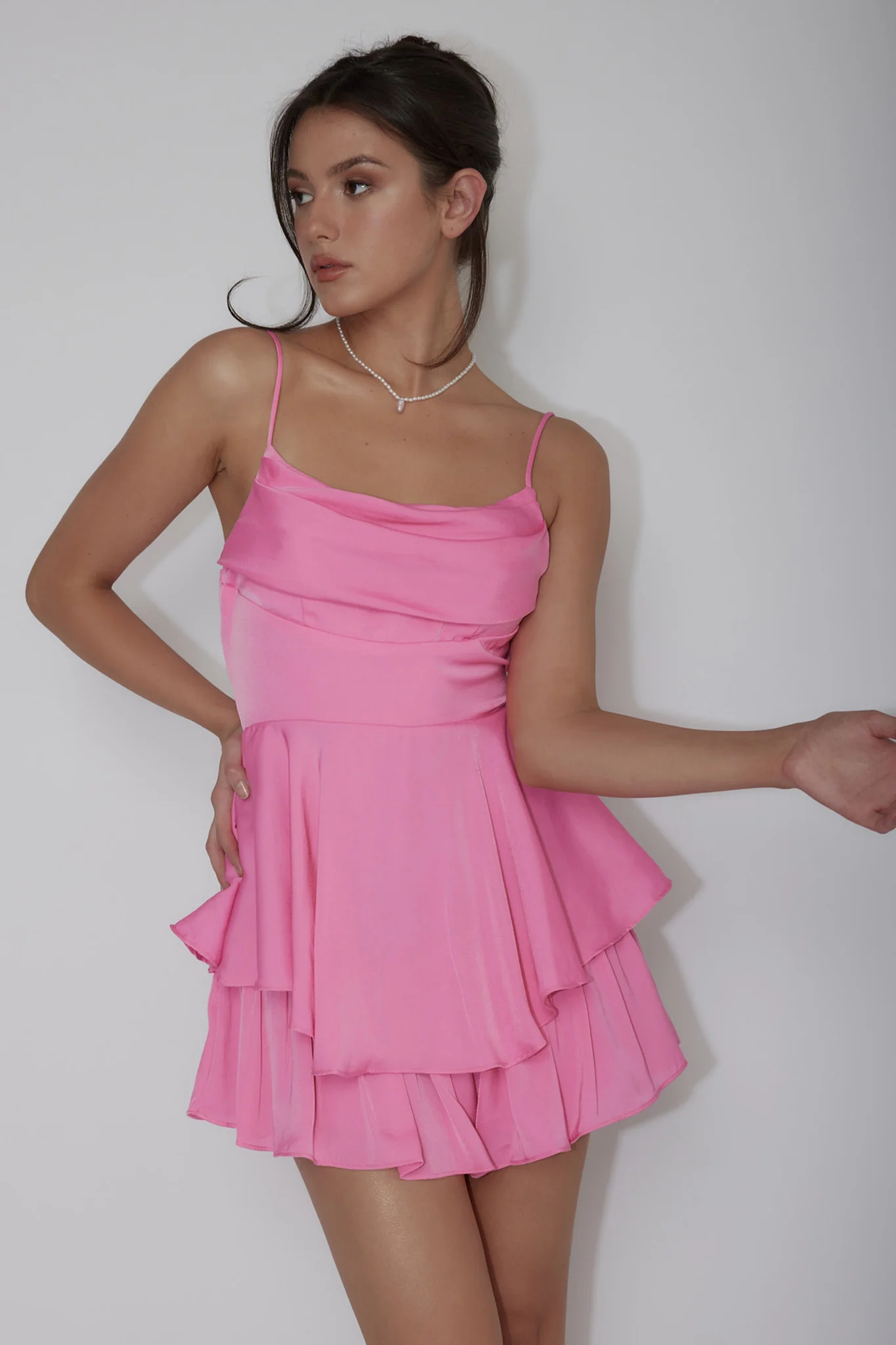 Well Versed Cowl Neck Flounce Romper Hot Pink