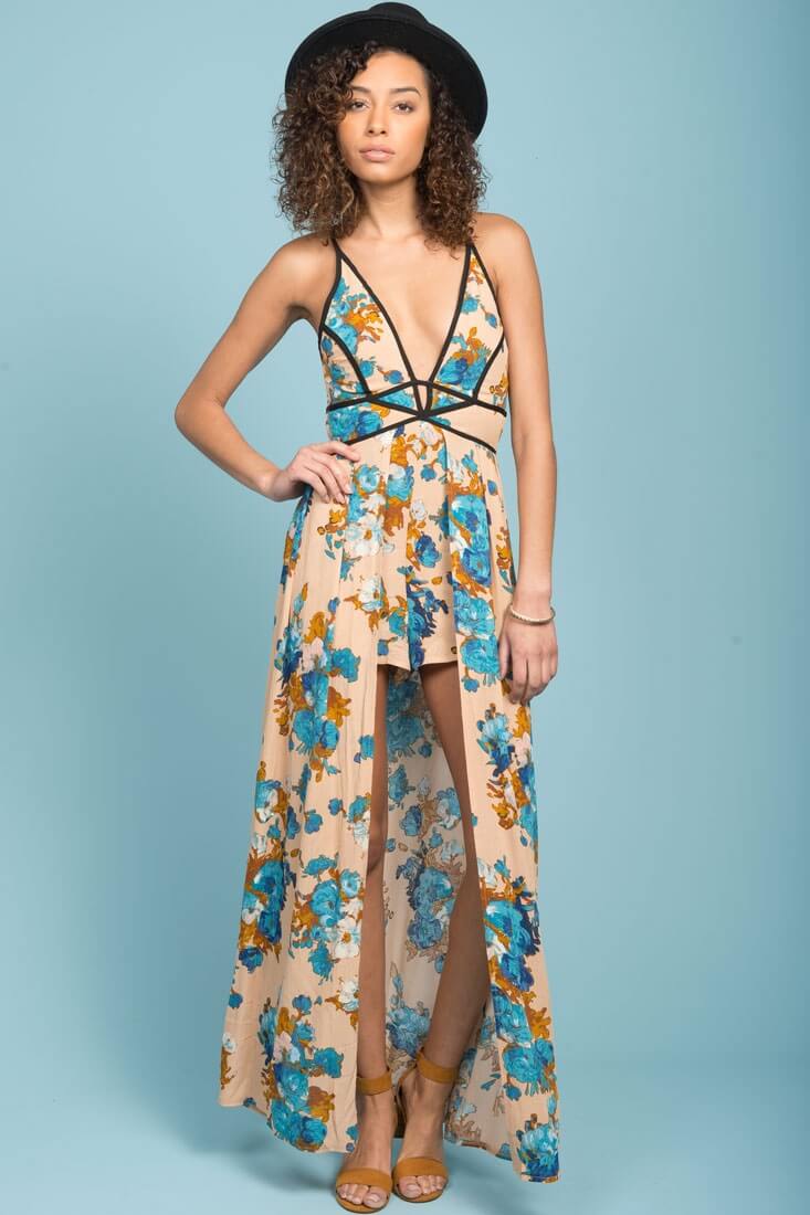 Tiana Floral Maxi Romper Mocha