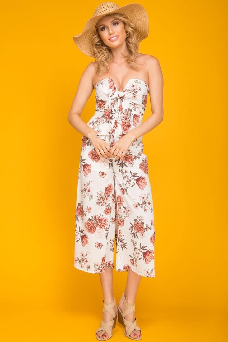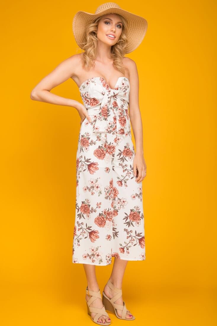 Khloe Floral Summer Bow Tie Jumpsuit White