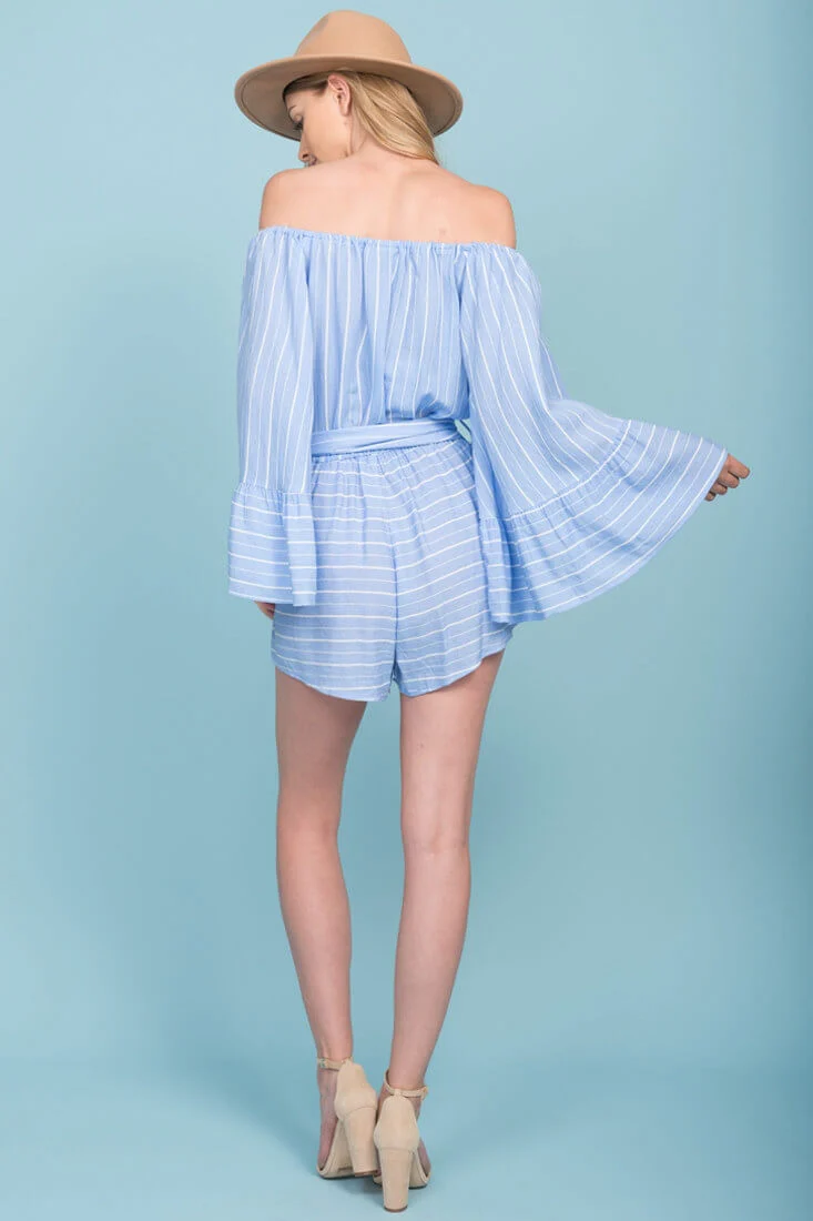 Brisk Bell Sleeve Romper Blue & White | Sophisticated | Selfie Leslie