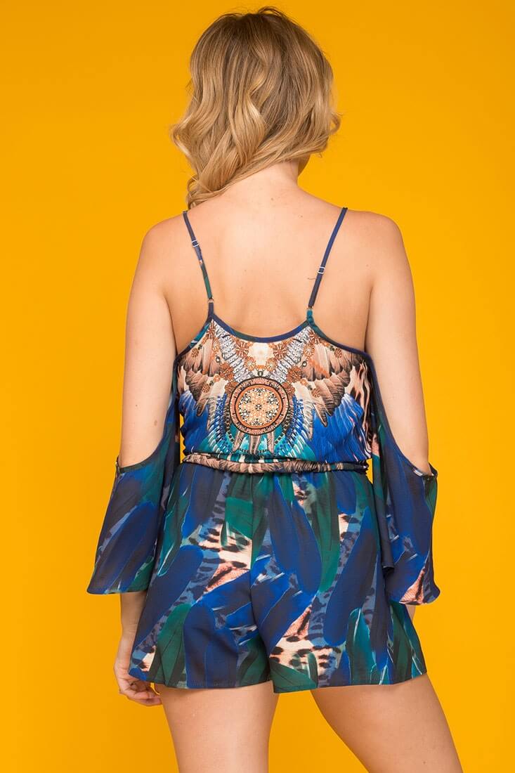 Dayana Casual Halter Top Gypsy Romper Blue & Navy