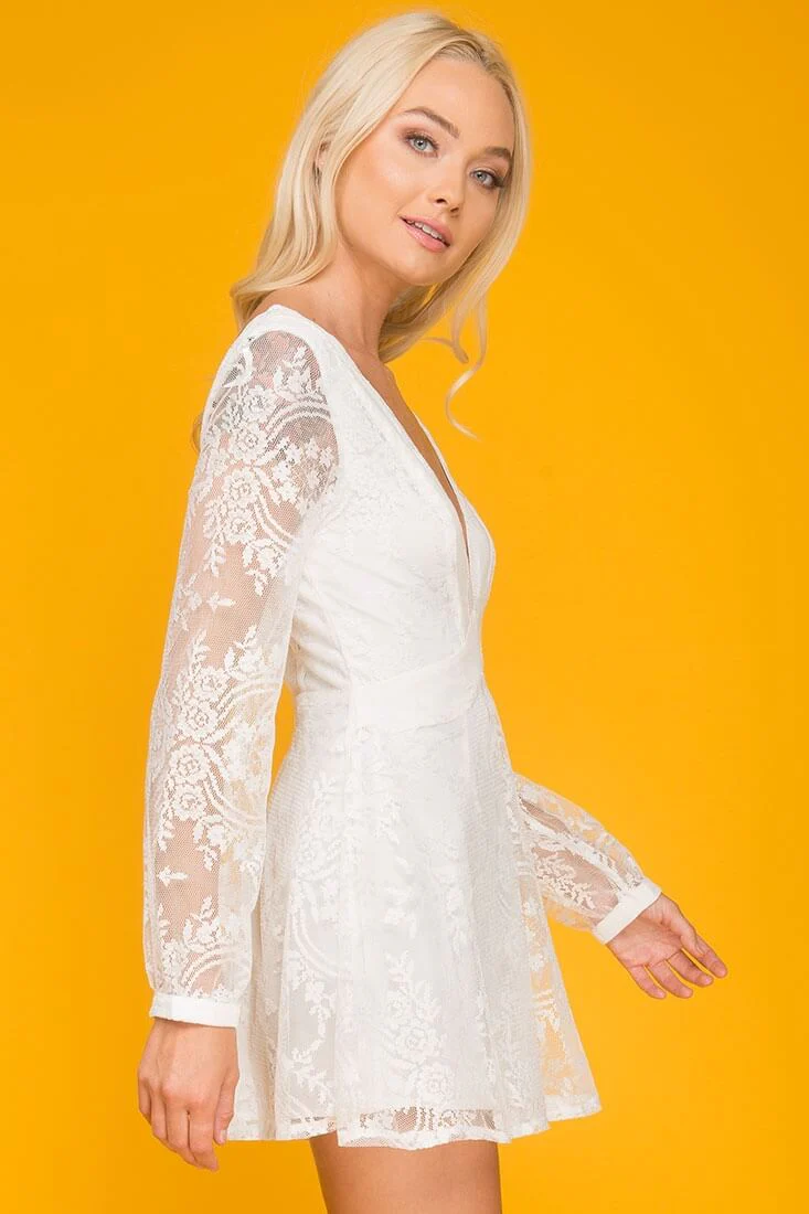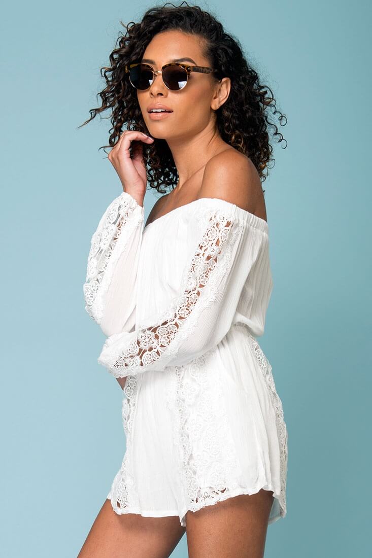 Eliana Off The Shoulder Lace Sleeve Romper White